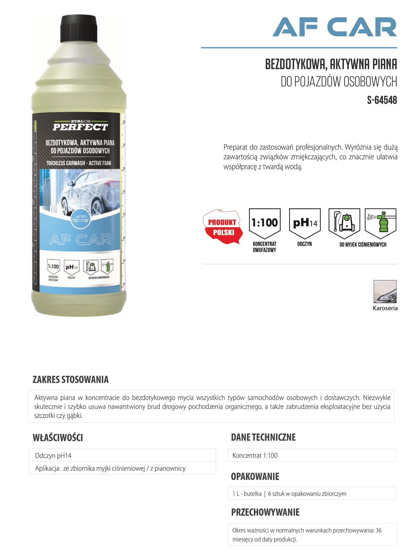 Aktywna piana w koncentracie, przeznaczona do bezdotykowego mycia samochodów osobowych i dostawczych.