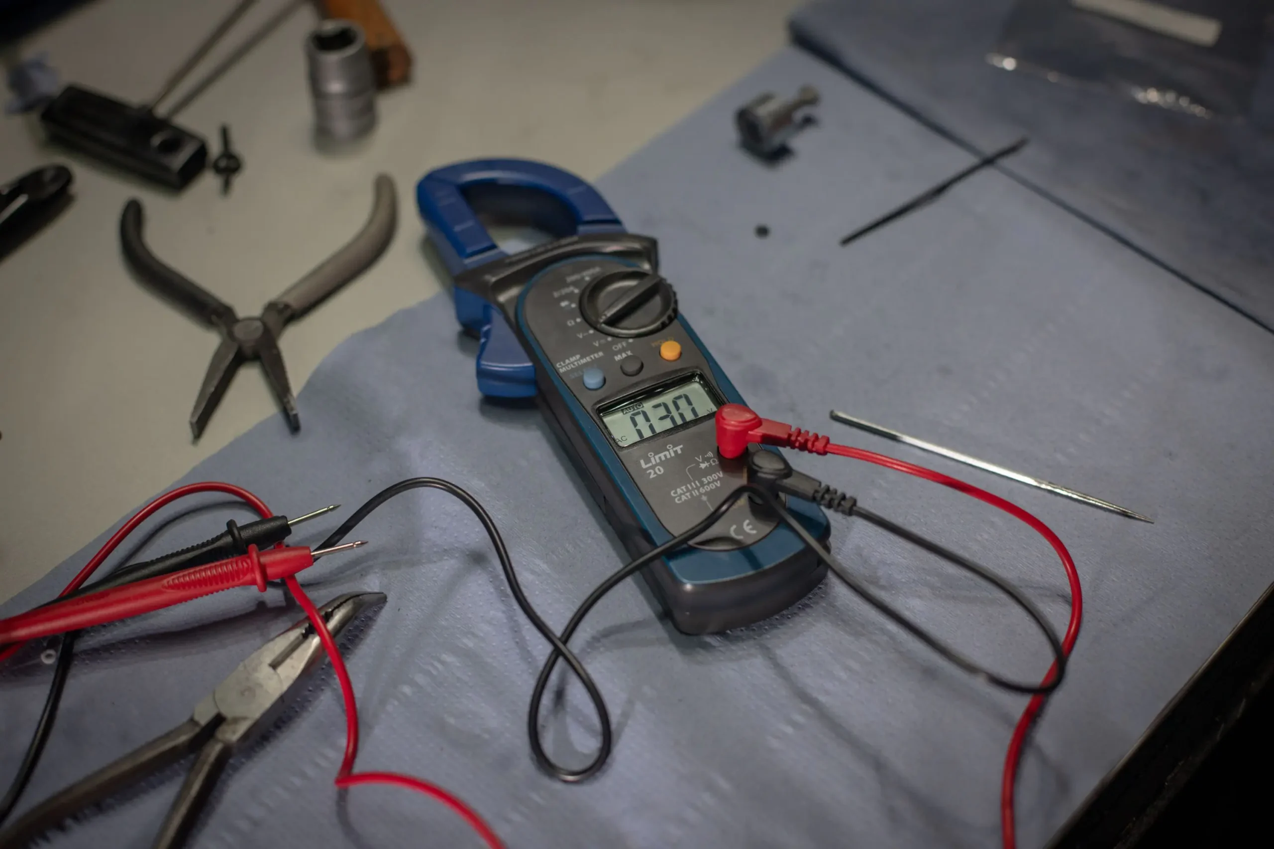 Amperomierz cęgowy / multimetr z funkcją automatycznego doboru zakresu pomiarowego.