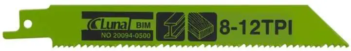 To bimetalowy brzeszczot szablasty Luna o wymiarach 300 × 19 × 1,3 mm z uzębieniem 8/12 TPI, przeznaczone do pił szablastych.