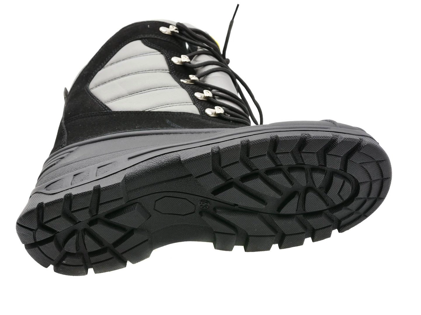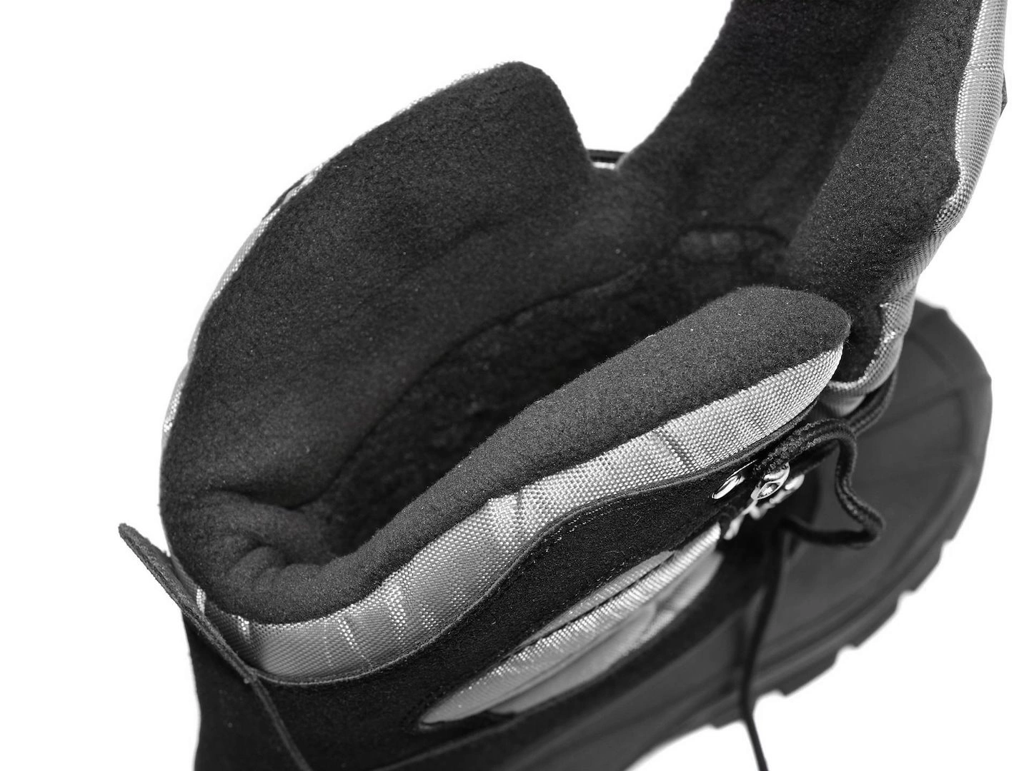Wnętrze buta wykończono grubą, futerkową podszewką z dzianiny, która skutecznie chroni stopy przed mrozem. Dodatkowo, zastosowany system sznurowania z haczykami umożliwia precyzyjne dopasowanie obuwia do łydki, zapewniając stabilność i wygodę.