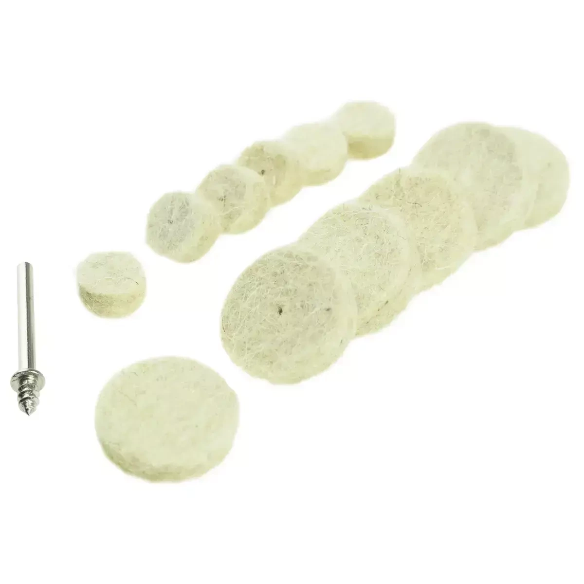 W jego skład wchodzi: 6 filców polerskich o średnicy 24 mm, 6 filców o średnicy 12 mm oraz trzpień o średnicy 3,2 mm z spiralnie frezowaną końcówką, zapewniającą stabilne mocowanie filców.