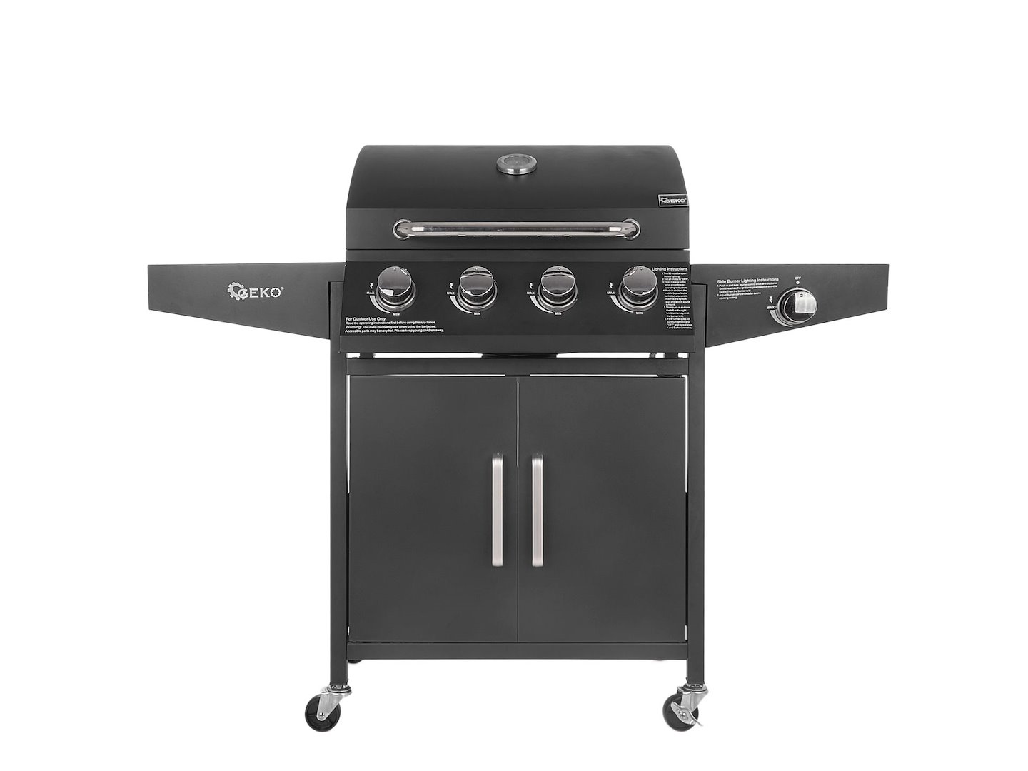 Niezawodny grill gazowy – posiada on cztery palniki główne, zapewniające równomierne rozprowadzanie ciepła i dodatkowy palnik idealny dla np. garnka/czajnikla.