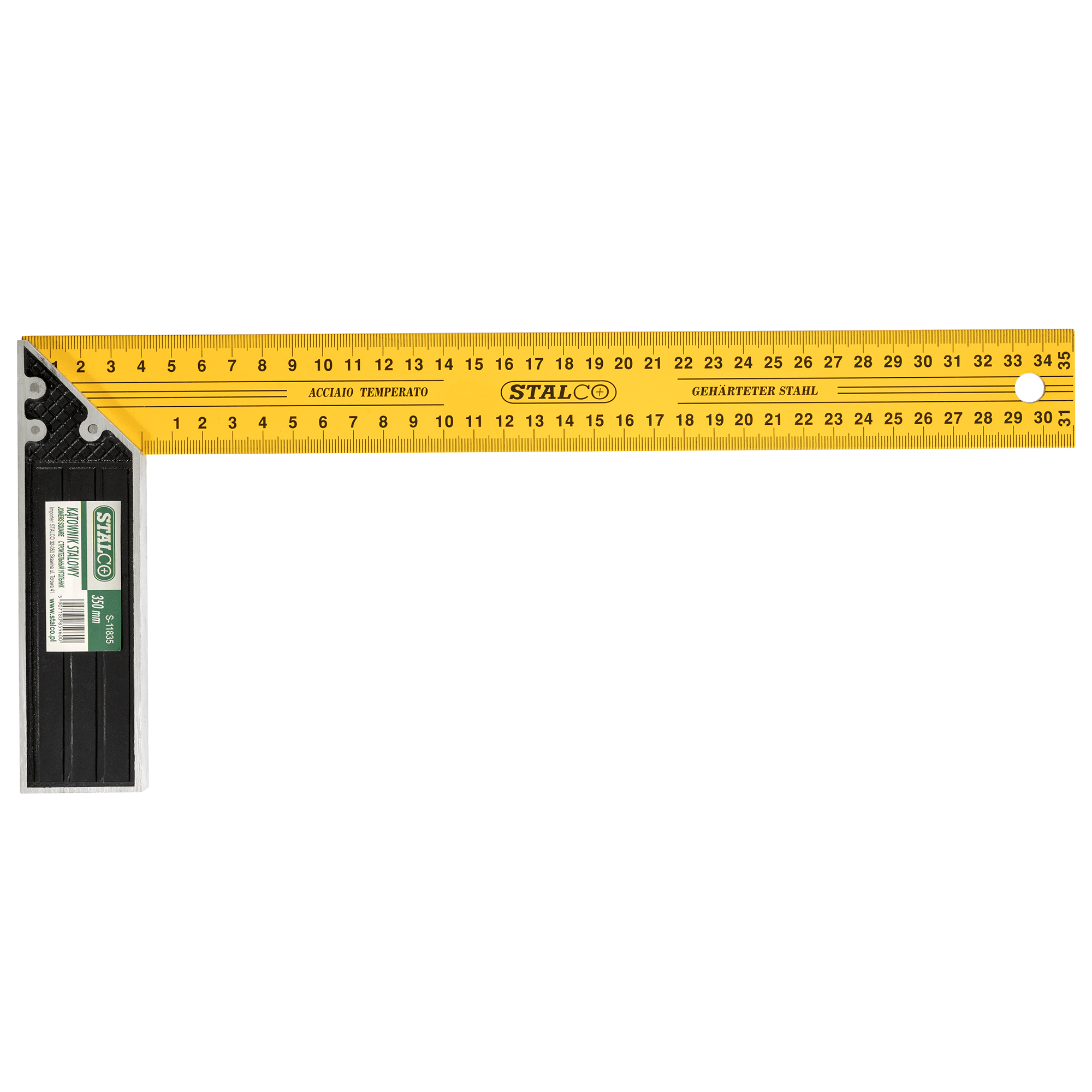 Dodatkowo, narzędzie pozwala na ustawienie podziałki pod kątem 45 stopni. Kątownik dostępny jest w czterech wersjach, różniących się długością podziałki. Czytelne oznaczenia oraz solidne wykonanie gwarantują długotrwałe i niezawodne użytkowanie.