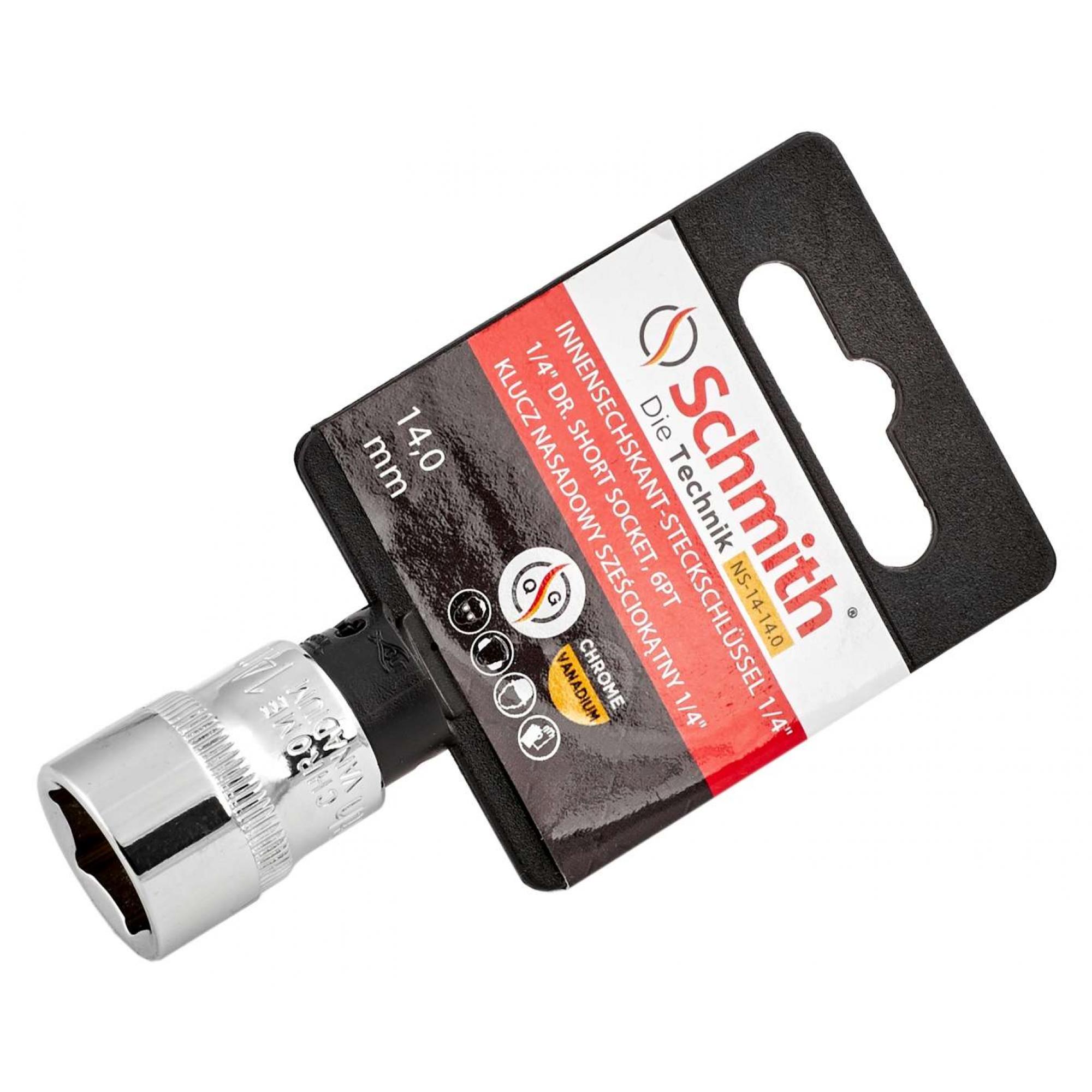 Klucz nasadowy NS‑14‑5 to nasadka sześciokątna o rozmiarze 5 mm, mocowana na trzpieniu 1/4 cala.