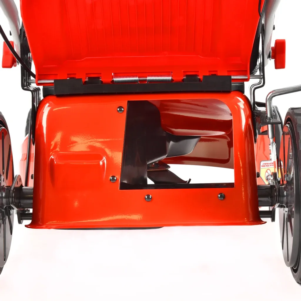 Kosz w tej kosiarce wykonany został z wytrzymałej tkaniny a jego pojemność wynosi 55 litrów.