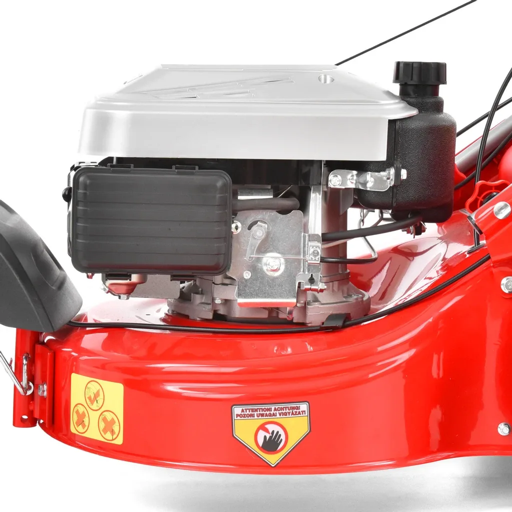Napędza ją silnik HECHT OHV 135 cm³ o mocy 3,3 KM, który zasila także tylne koła (prędkość ok. 3,3 km/h). Obudowa posiada otwór do wyrzutu bocznego z zaślepką i tunelem w zestawie, co pozwala kosić bez kosza na dużych powierzchniach. Szerokość robocza noża wynosi 46 cm, a wysokość koszenia reguluje się dźwignią w zakresie 25–75 mm.