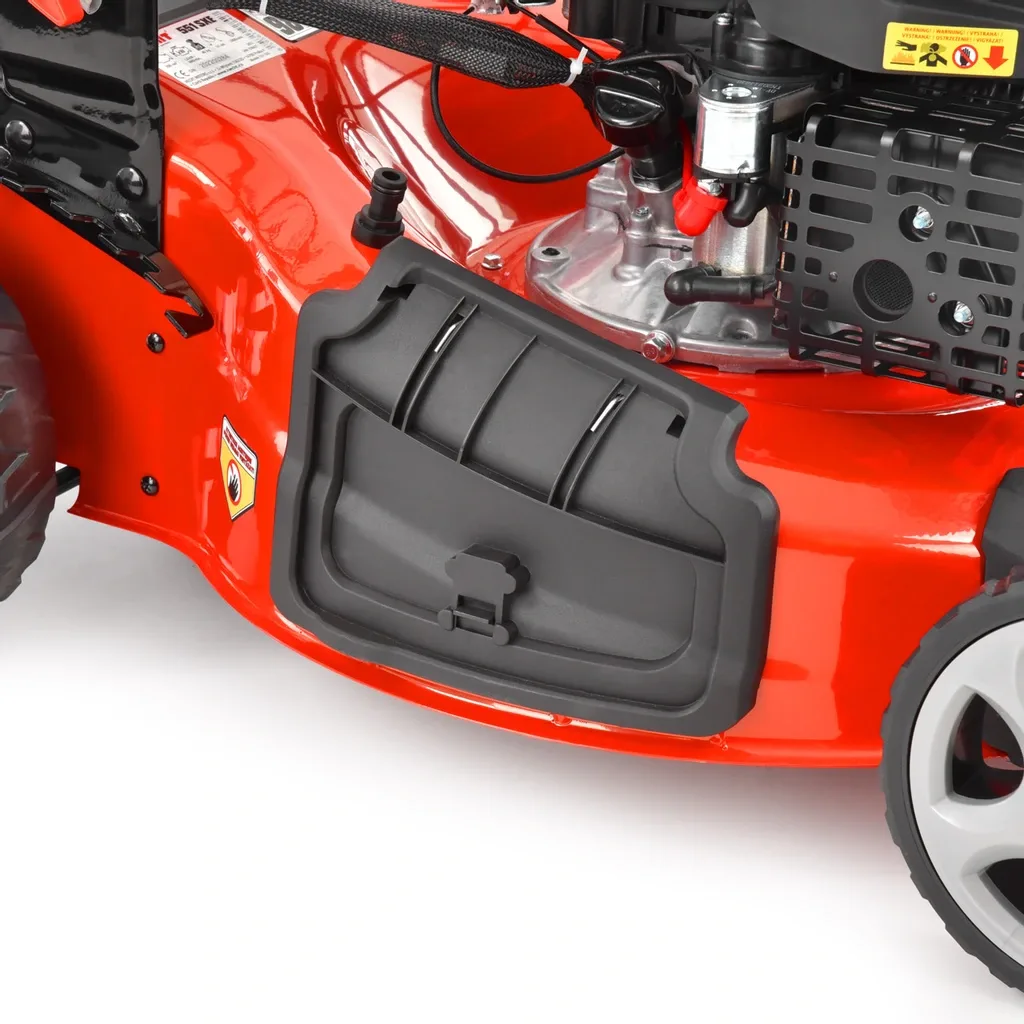 Kosiarka ta zostala wyposażona w regulację wysokości koszenia w zakresie od 25 do 75mm – za pomocą dźwigni umieszczonej przy prawym tylnym kole.