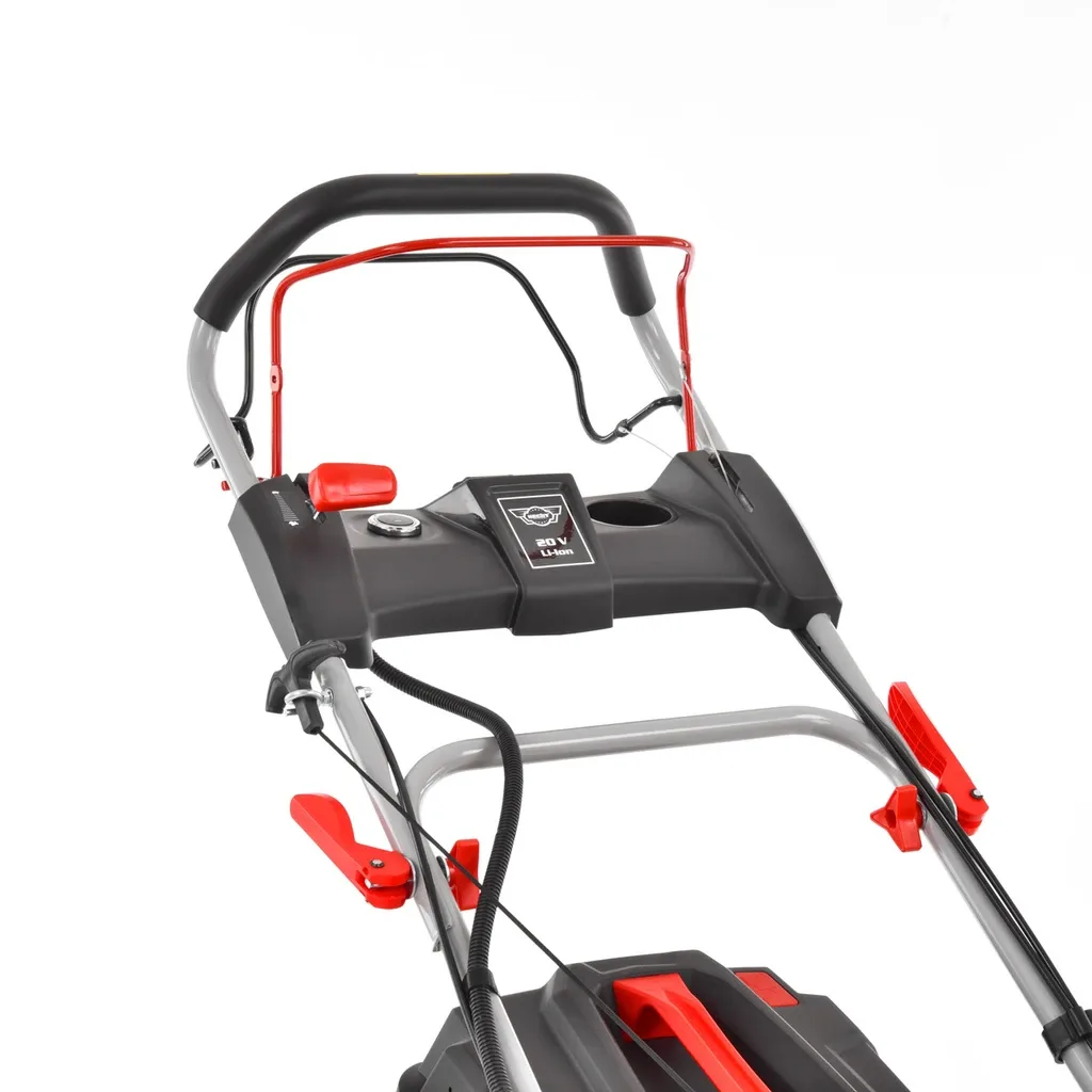 Koła w tym urządzeniu zamontowane zostały na łożyskach kulkowych, a bieżnik w który również jest wyposażona zapewnia doskonałą przyczepność. Kosiarka ta posiada materiałowy kosz o pojemności 65 litrów.