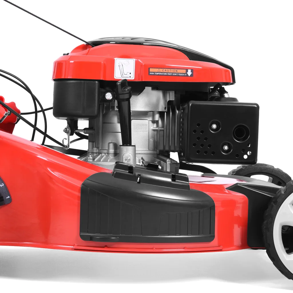 Kosiarka spalinowa HECHT 5564 SX 5w1 napędzana jest silnikiem HECHT OHV o pojemności 196 cm³ i mocy 4,7 KM. Wytrzymała stalowa obudowa chroni stalowy nóż o długości 56 cm.