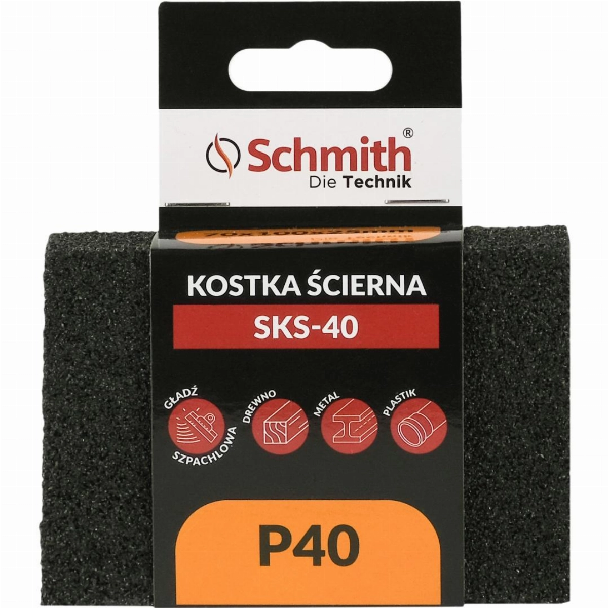 Jest to kostka ścierna do usuwania starych powłok (np. farba) i do wygładzania danych powierzchni (np. drewno, metal, plastik)