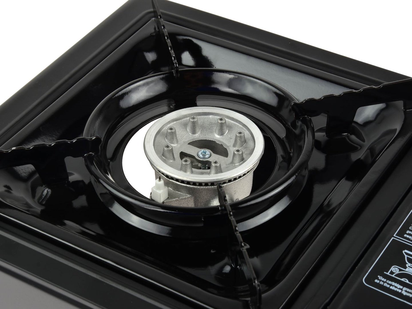 Wyposażona jest w zapalnik piezoelektryczny, co eliminuje konieczność używania zapałek lub zapalniczki. Palnik posiada specjalne wypustki, które gwarantują równomierne rozprowadzanie ciepła po całej powierzchni.