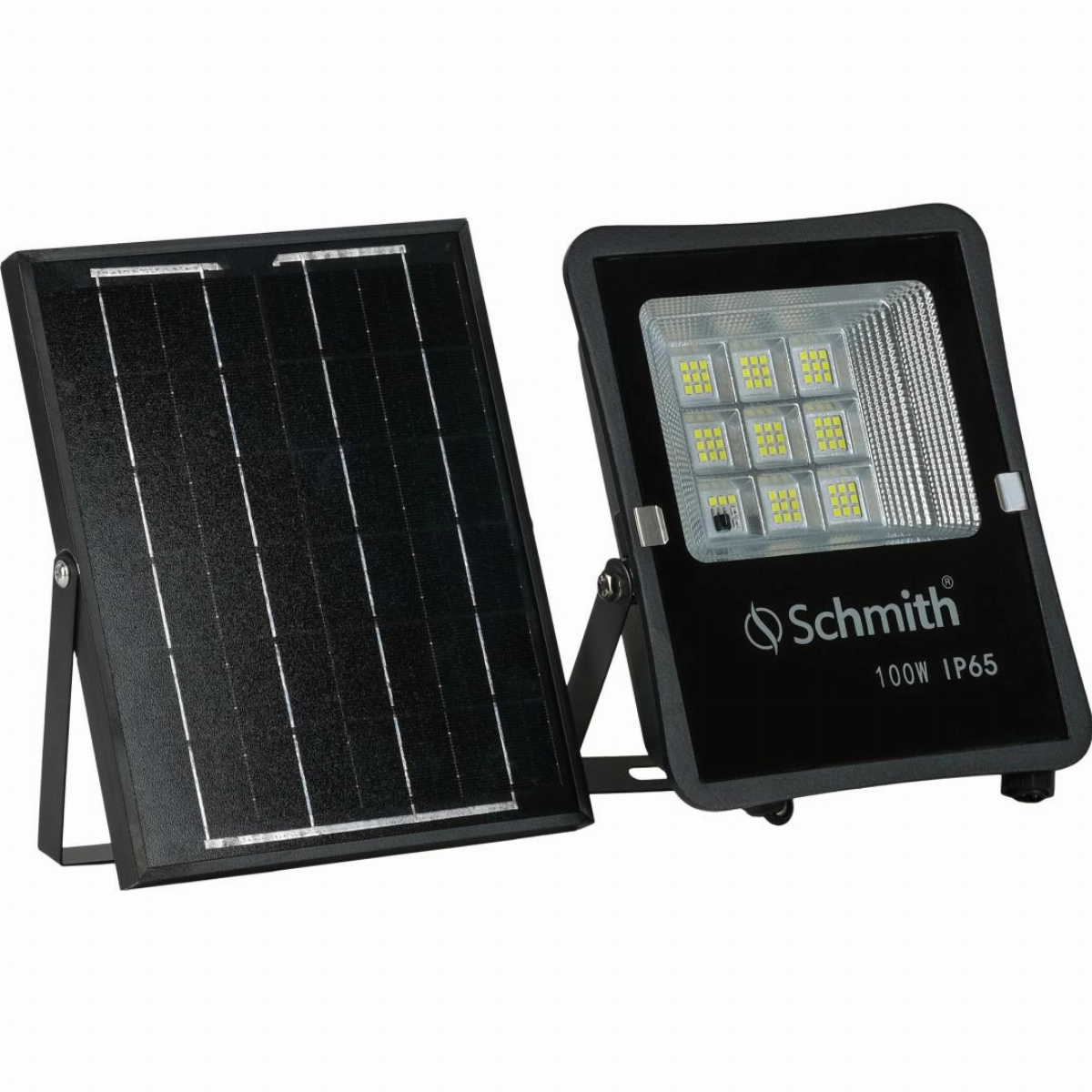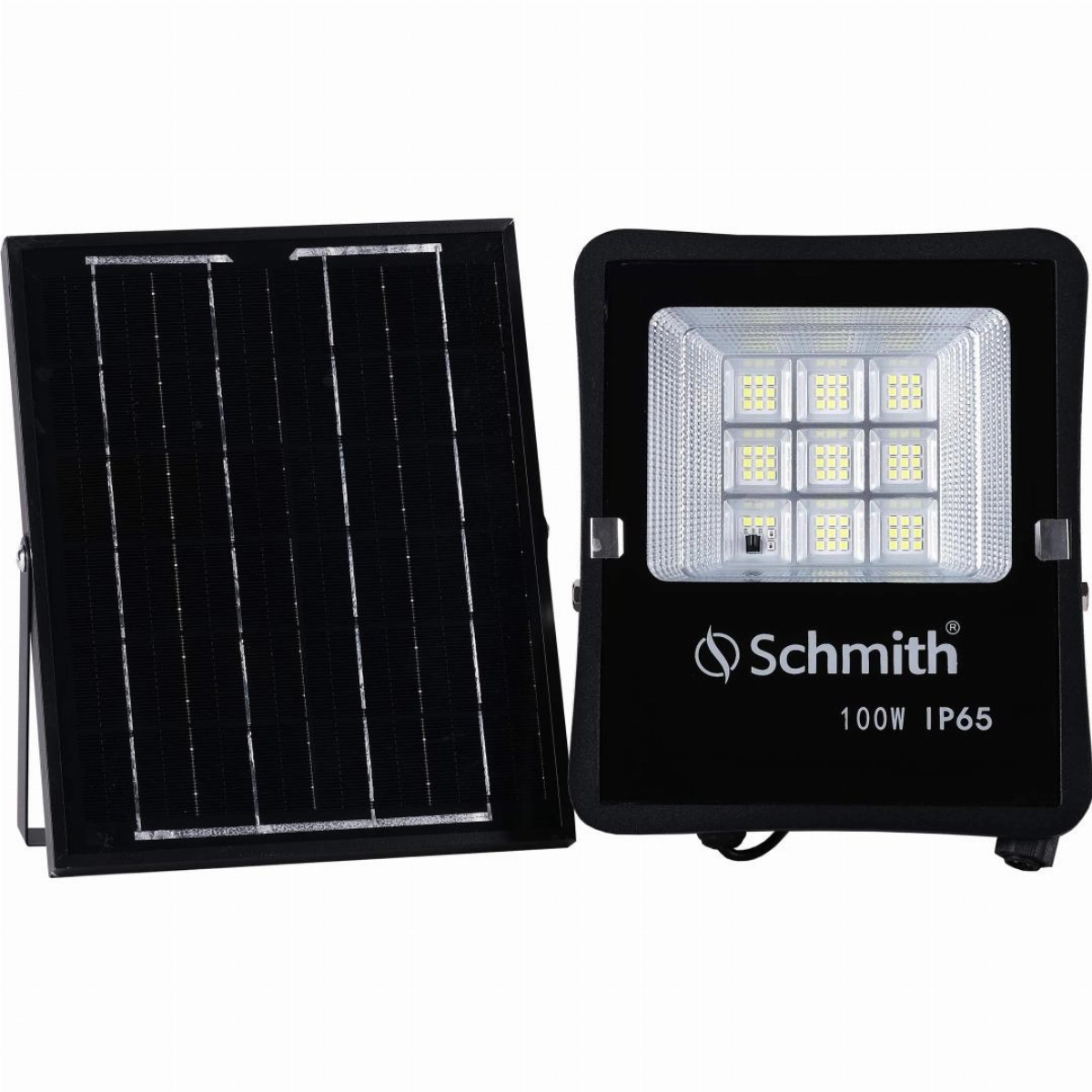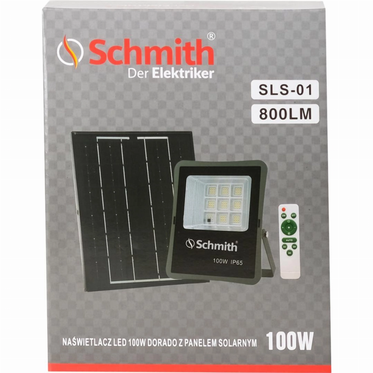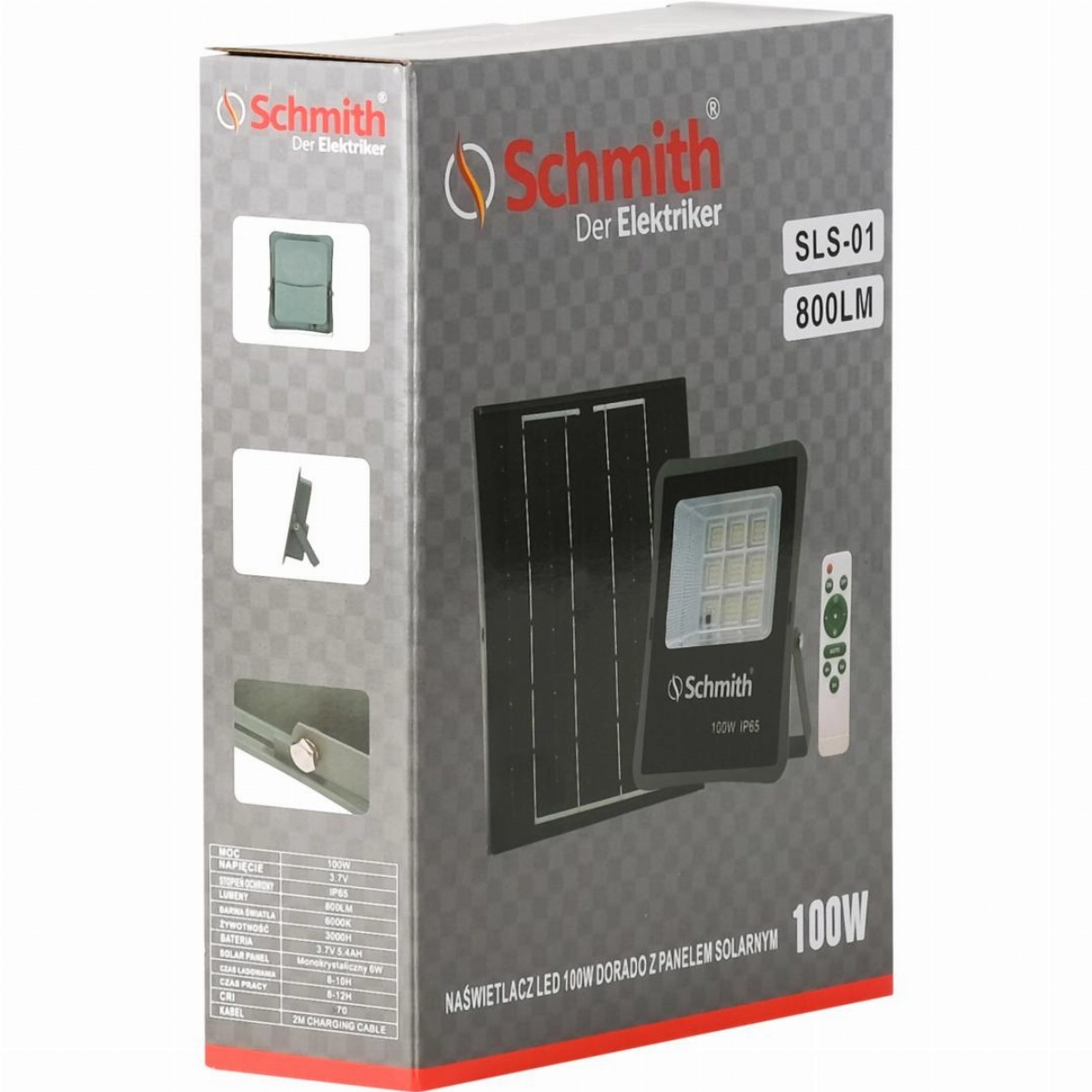 Lampa LED z panelem solarnym SCHMITH SLS-01 to nowoczesne i ekologiczne rozwiązanie o mocy 100 W, zaprojektowane do wykorzystania na zewnątrz.