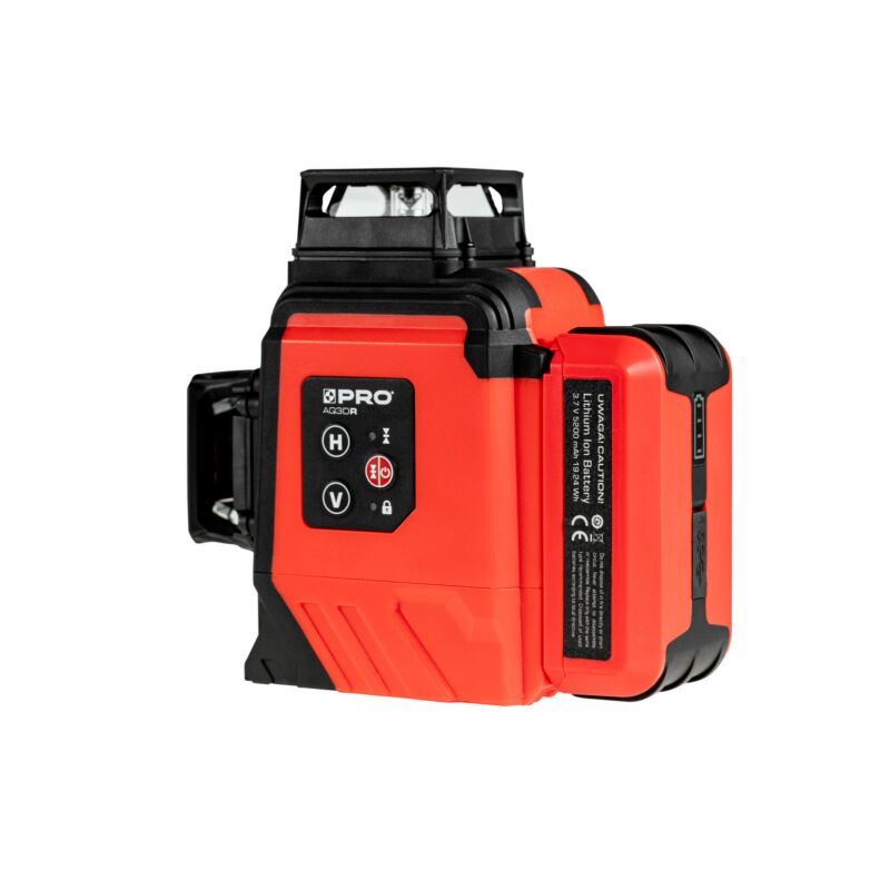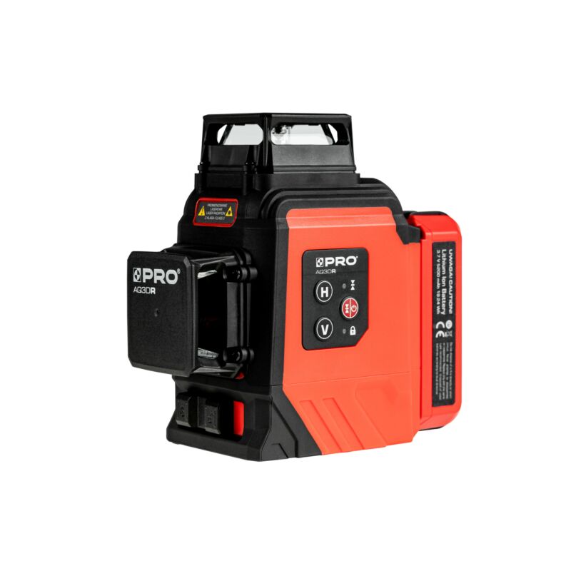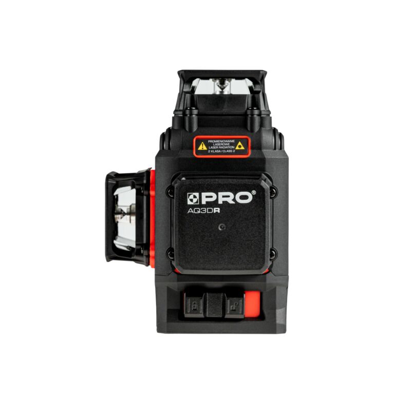 Laser wieloliniowy PRO-AQ3DR generuje trzy płaszczyzny 360° – jedną poziomą oraz dwie pionowe przecinające się pod kątem 90°.