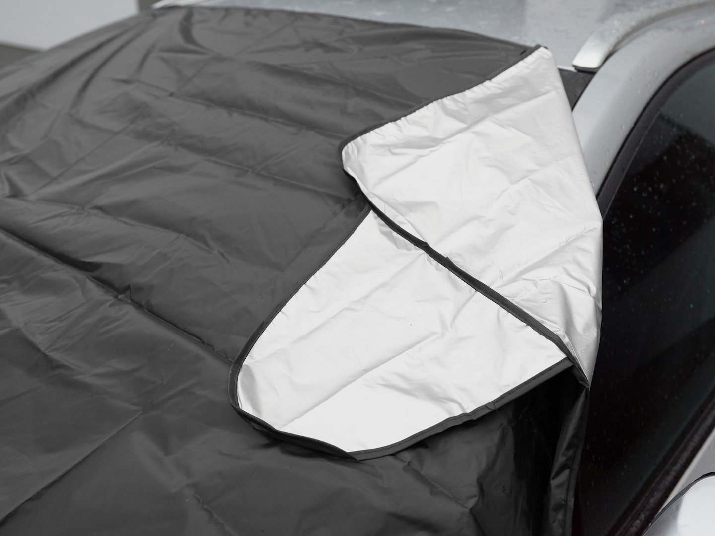 Wykonana z wytrzymałego, powlekanego aluminium, zapewnia trwałość i odporność na trudne warunki atmosferyczne. Dzięki wbudowanym magnesom ferrytowym umieszczonym w ochronnych kieszonkach, mata łatwo i bezpiecznie montuje się na szybie samochodu, nie uszkadzając lakieru.