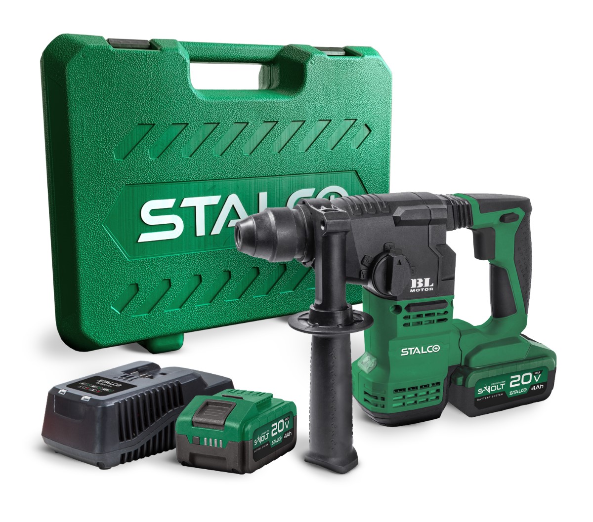 Młotowiertarka ta obsługuje wiertła i dłuta wyposażone w uchwyt SDS Plus. Może wiercić w betonie do średnicy 18mm, w drewnie do 20mm, i stali o 13mm. Urządzenie wyposażone jest w silnik bezszczotkowy i mocny mechanizm udarowy, który ułatwia pracę nawet z bardzo twardymi materiałami. Posiada również regulacje prędkości na włączniku a także funkcę zmiany kierunku obrotów.