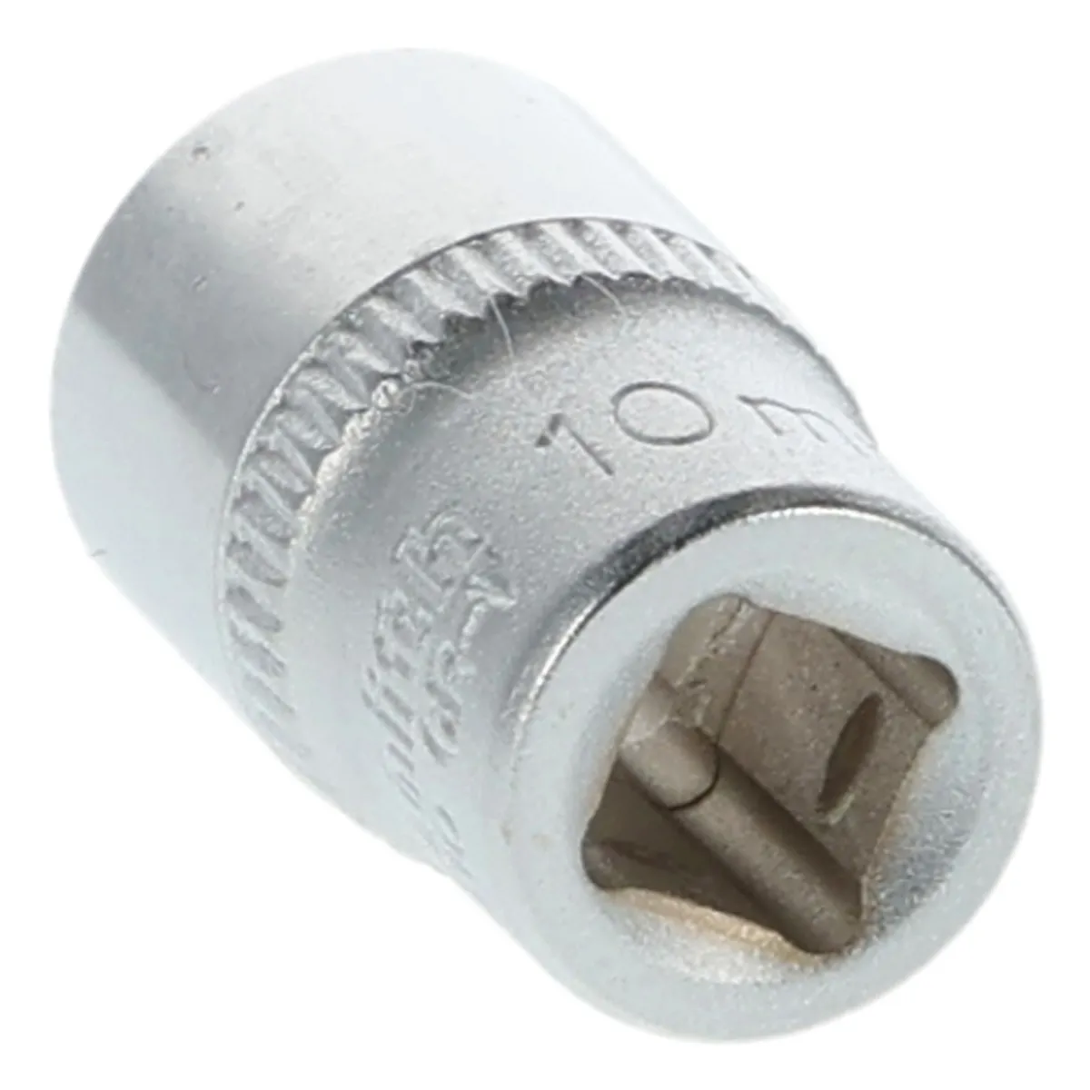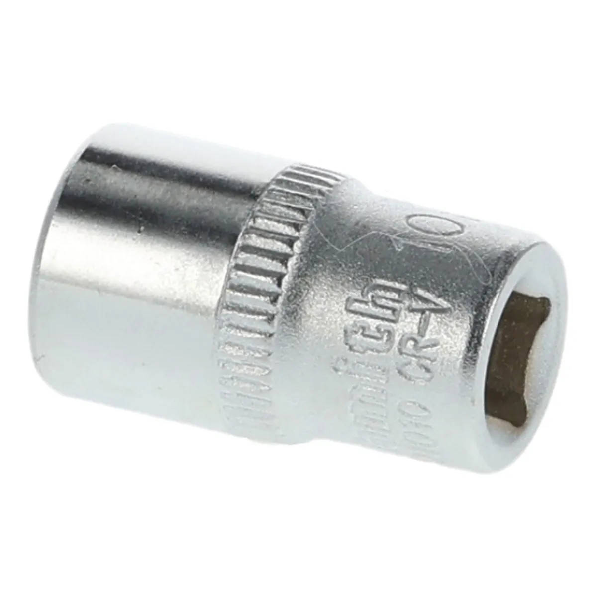 Nasadka sześciokątna 1/4″ o wymiarze 10 mm to solidne narzędzie stworzone z trwałej stali chromowo-wanadowej (CR-V), która gwarantuje długą żywotność i odporność na rdzę.