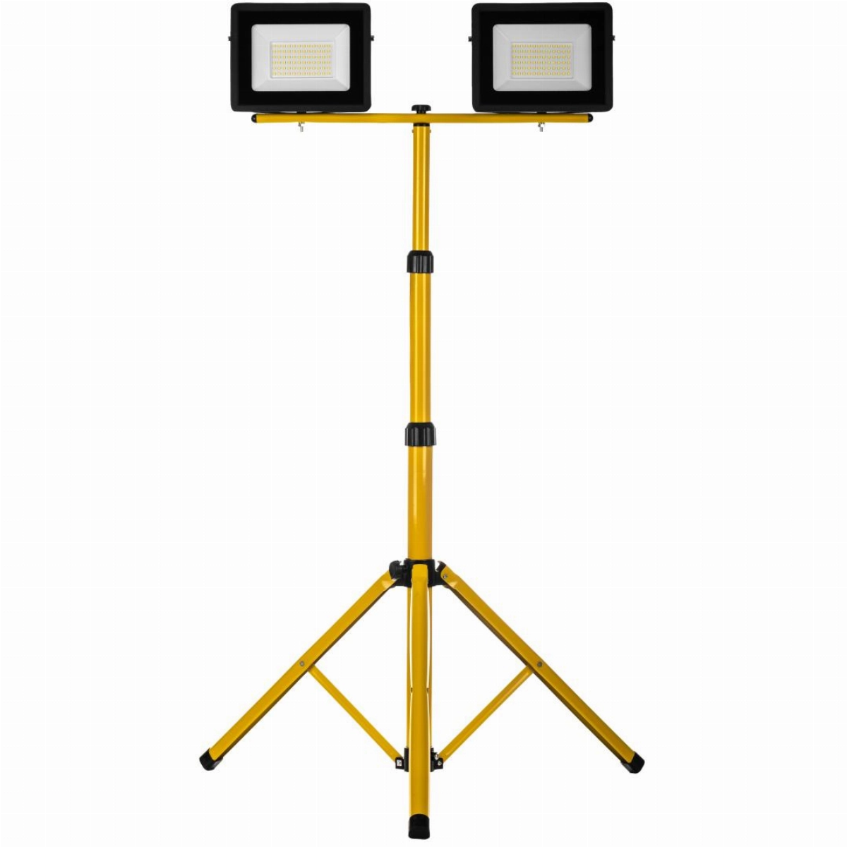 Naświetlacz LED wyposażony w dwa moduły o mocy 50W każdy, zamontowane razem na składanych żółtym statywie. Przeznaczony jest on głównie do wykorzystywania przy pracach remontowych i budowlanych – na zewnątrz jak i wewnątrz.
