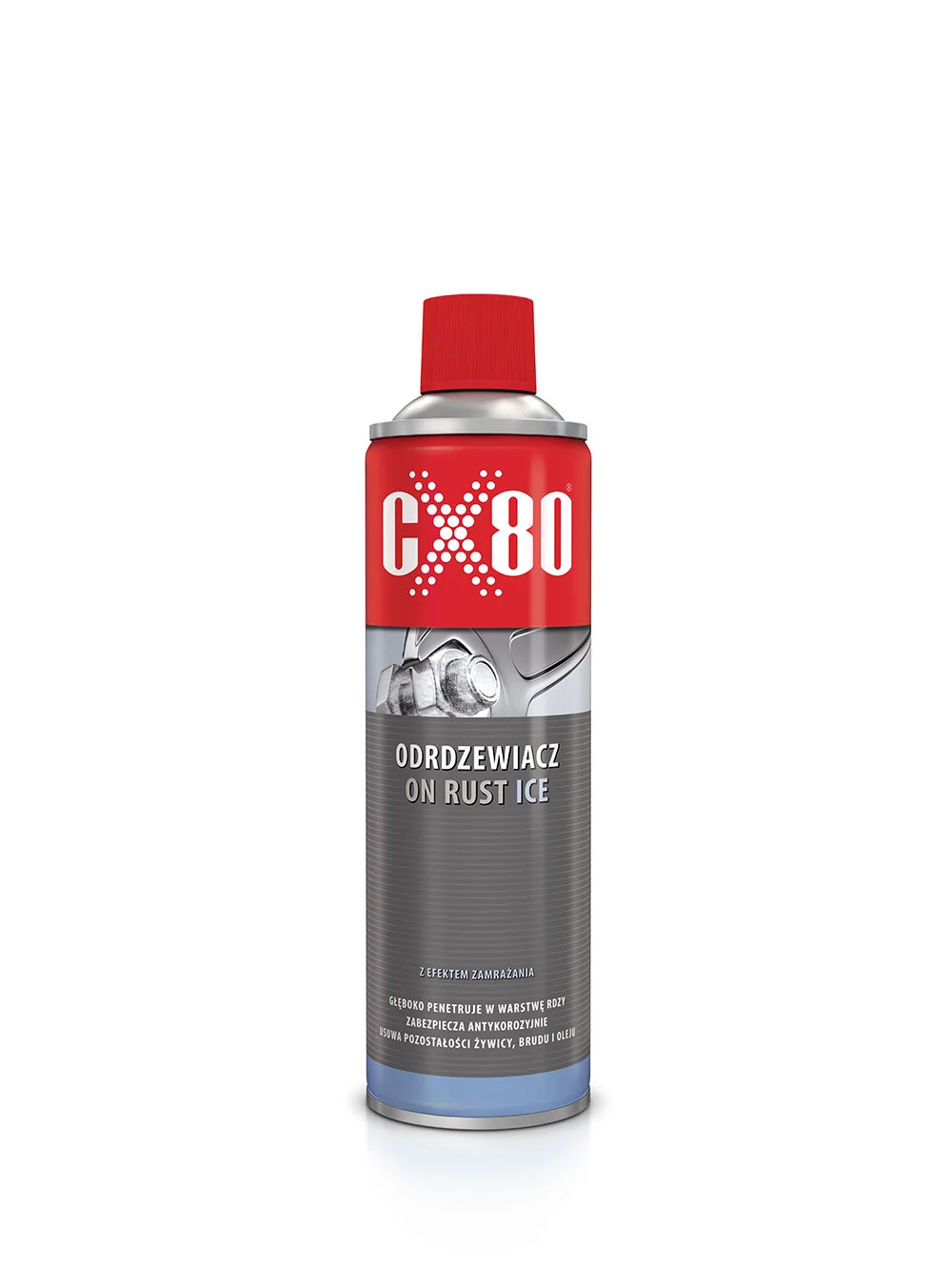 CX80 ODRDZEWIACZ ON RUST ICE 500ml to specjalistyczny preparat w sprayu przeznaczony do szybkiego usuwania rdzy oraz odblokowywania zapieczonych elementów metalowych.