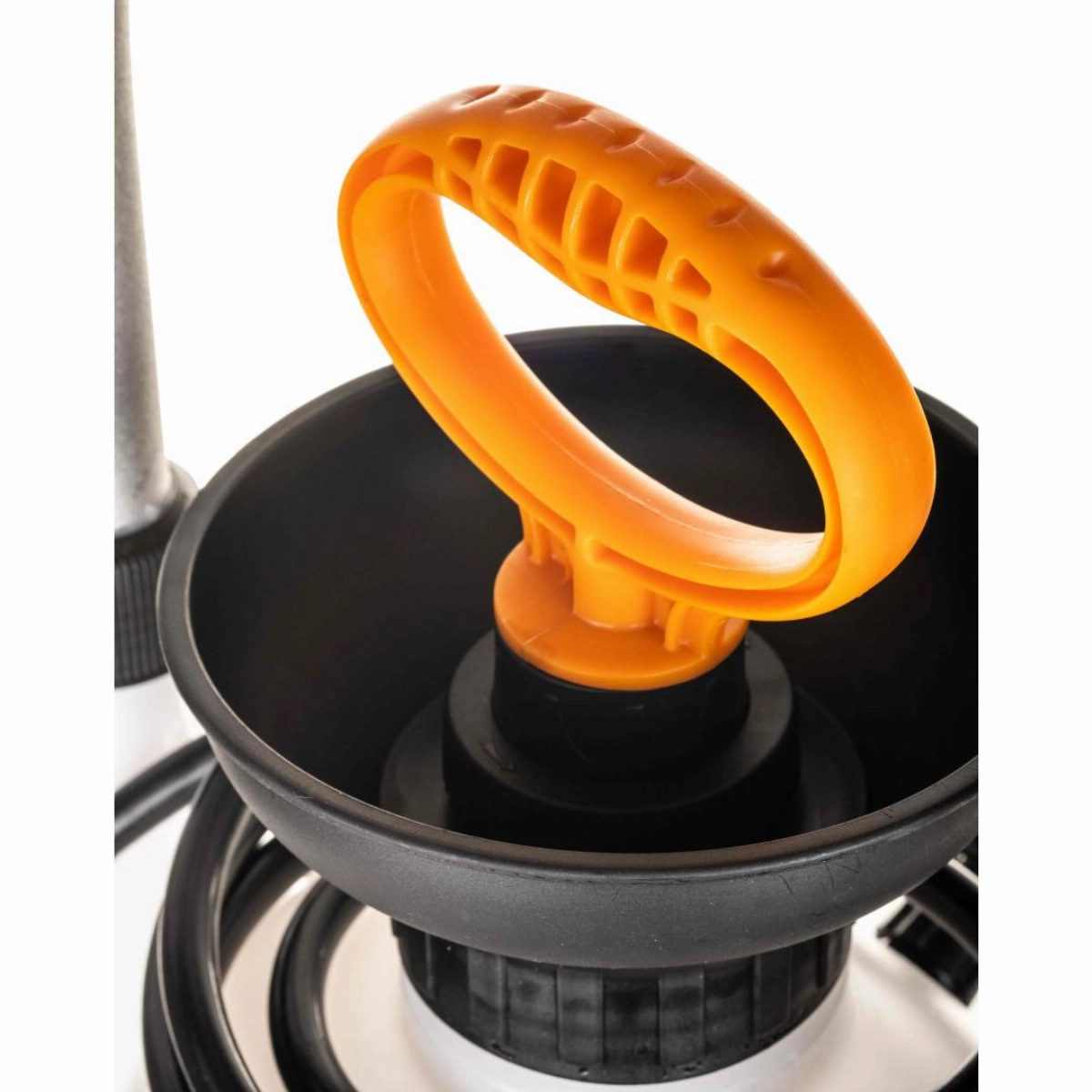 Wyposażony w regulowaną dyszę, pozwala na precyzyjne dopasowanie strumienia cieczy – od mocnego natrysku po delikatną mgiełkę – co zwiększa jego uniwersalność.