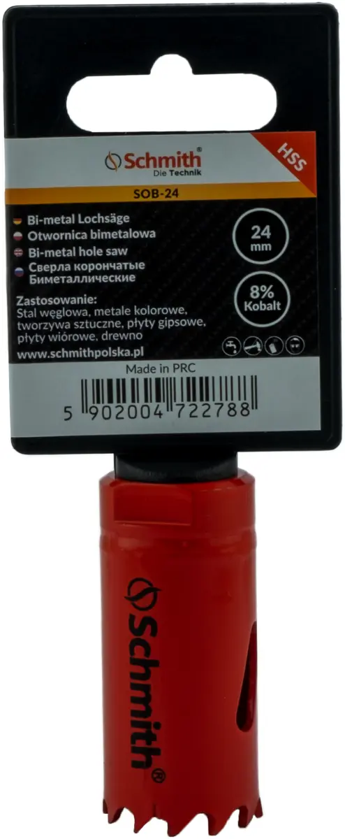 Bimetalowa otwornica Schmith 24 mm to uniwersalne narzędzie przeznaczone do wiercenia w szerokiej gamie materiałów, takich jak stal, stal nierdzewna, aluminium, metale nieżelazne, drewno czy tworzywa sztuczne.