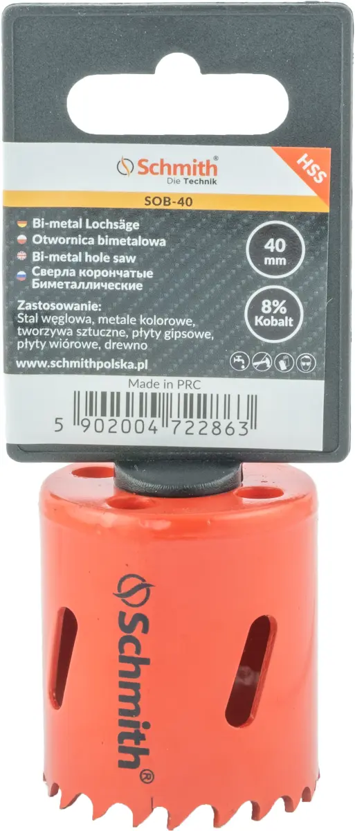 Bimetalowa otwornica Schmith 40 mm to uniwersalne narzędzie przeznaczone do wiercenia w szerokiej gamie materiałów, takich jak stal, stal nierdzewna, aluminium, metale nieżelazne, drewno czy tworzywa sztuczne.