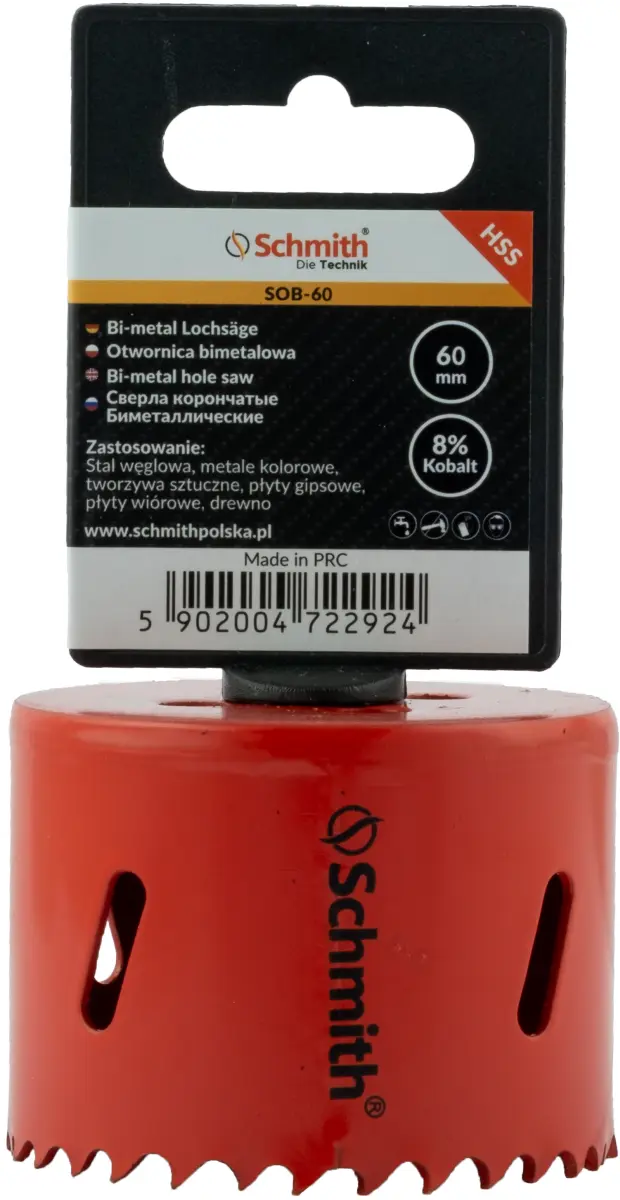 Bimetalowa otwornica Schmith 60 mm to uniwersalne narzędzie przeznaczone do wiercenia w szerokiej gamie materiałów, takich jak stal, stal nierdzewna, aluminium, metale nieżelazne, drewno czy tworzywa sztuczne.