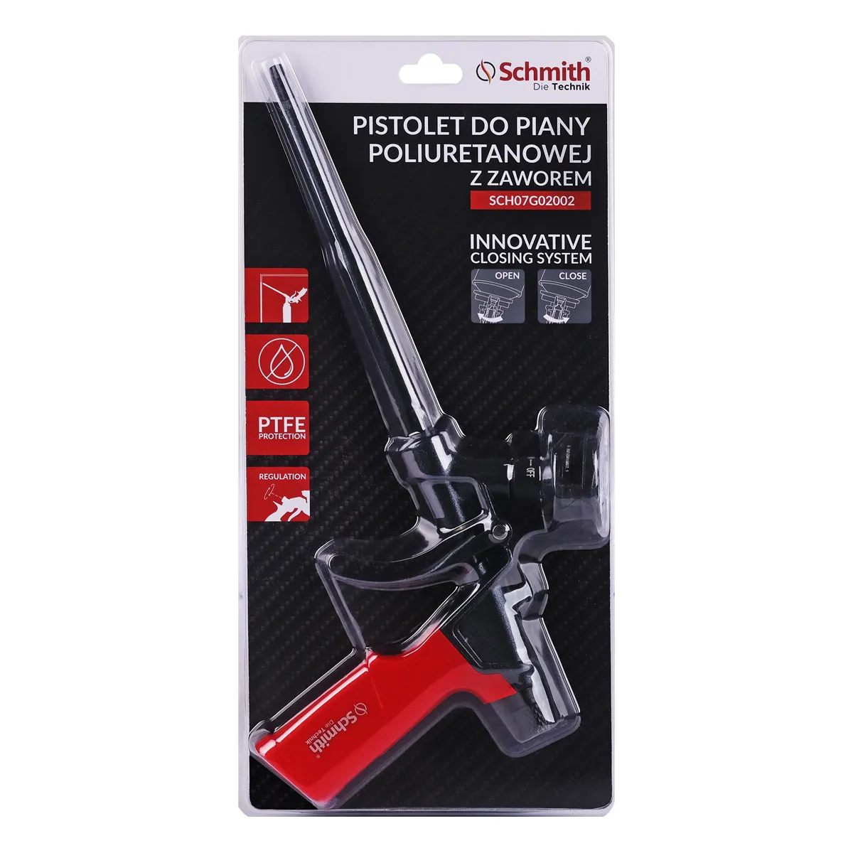 - Wyposażony w mechanizm regulacji ilości dozowanej pianki