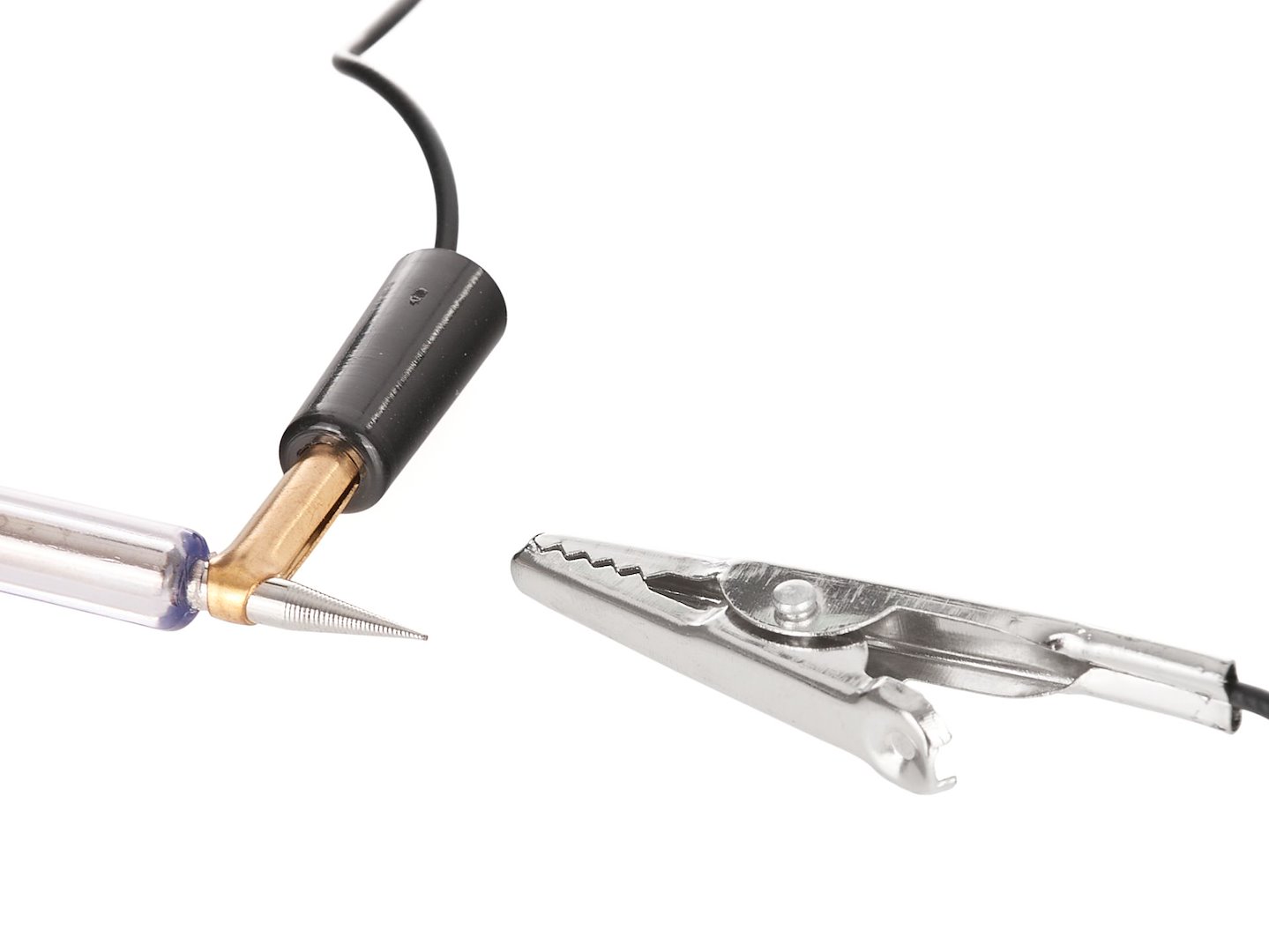 Wyposażone jest w dodatkowy przewód zakończony zaciskiem typu „krokodylek”, co umożliwia wygodne i stabilne podłączenie do elementów instalacji, ograniczając ryzyko błędów podczas pomiarów.