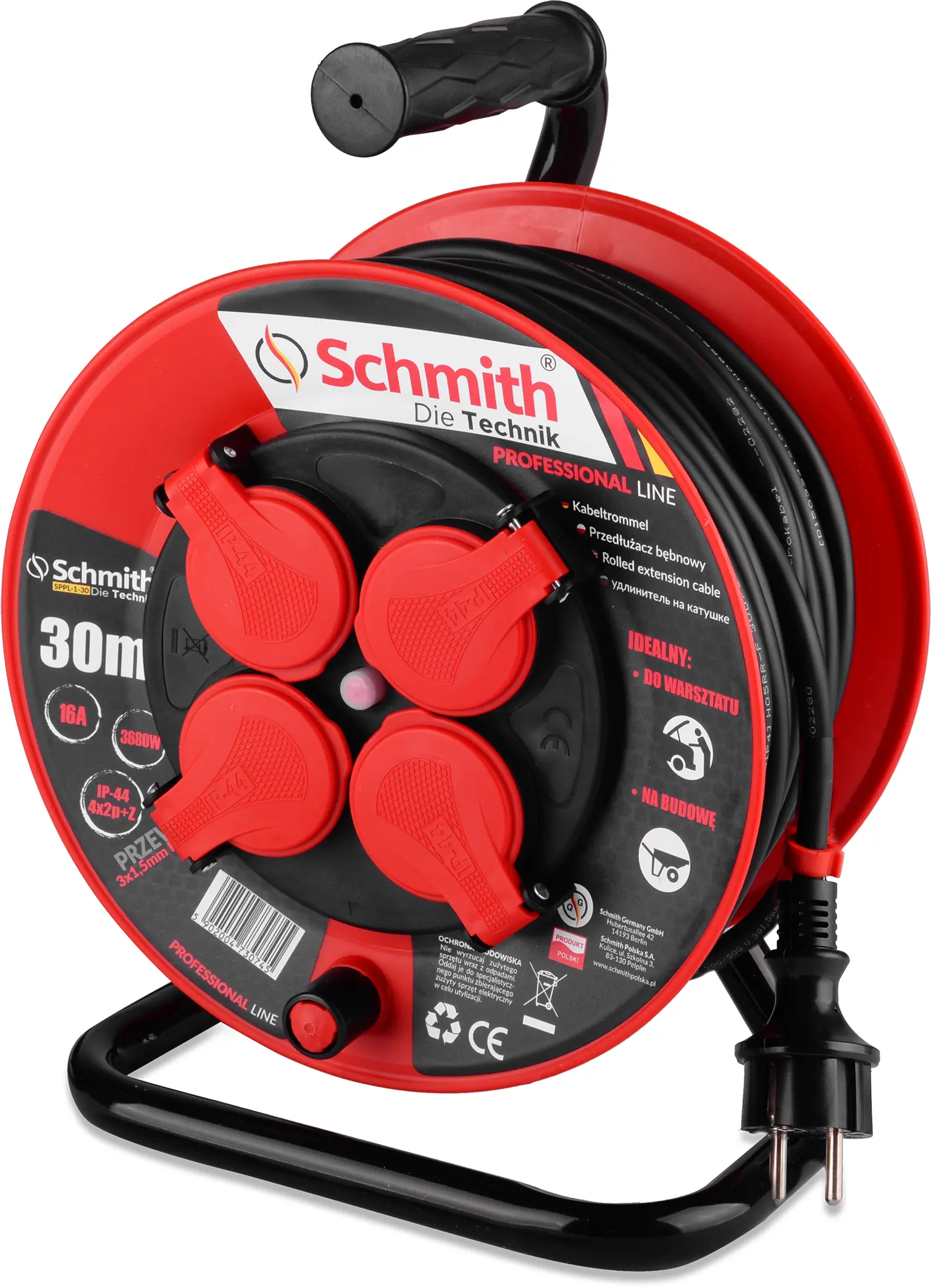 Przedłużacz bębnowy PROFESSIONAL LINE to solidne narzędzie stworzone z myślą o pracy w trudnych warunkach warsztatowych i budowlanych.