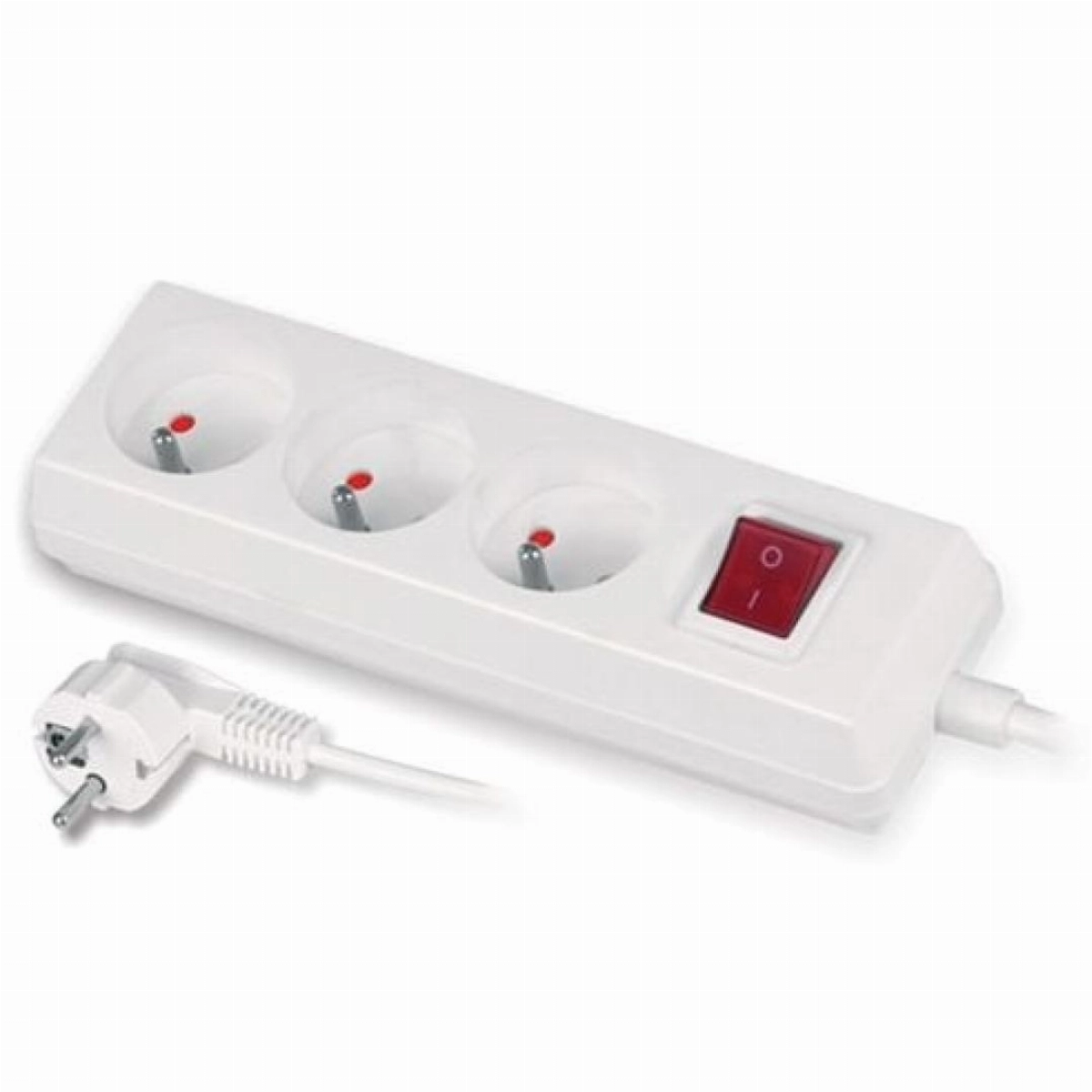 Przedłużacz z wyłącznikiem, posiadający trzy gniazda z uziemieniem, to funkcjonalne i bezpieczne rozwiązanie przeznaczone do codziennego użytkowania w domu lub biurze.