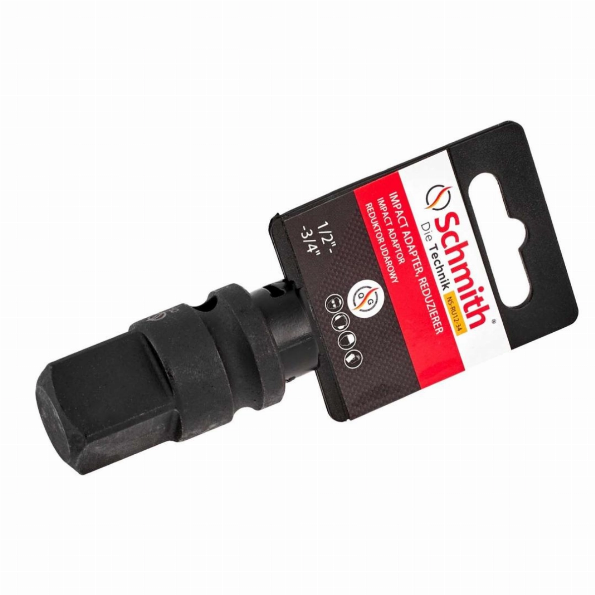 Reduktor udarowy SCHMITH NS‑RU12‑34 — adapter przejściowy z 1/2″ na 3/4″, zaprojektowany do pracy z kluczami udarowymi.