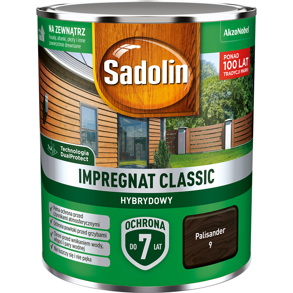 Sadolin Impregnat Classic 0,75l Palisander to wysokiej jakości impregnat ochronno-dekoracyjny do drewna. Zapewnia długotrwałą ochronę przed wilgocią, promieniowaniem UV oraz pleśnią. Głęboko wnika w strukture drewna, podkreślając jego naturalne usłojenie i nadają naturalny, ciemny odcień palisanderu. Idealny do zastosowań zewnętrznych, takich jak ogrodzenia, altany czy meble ogrodowe.