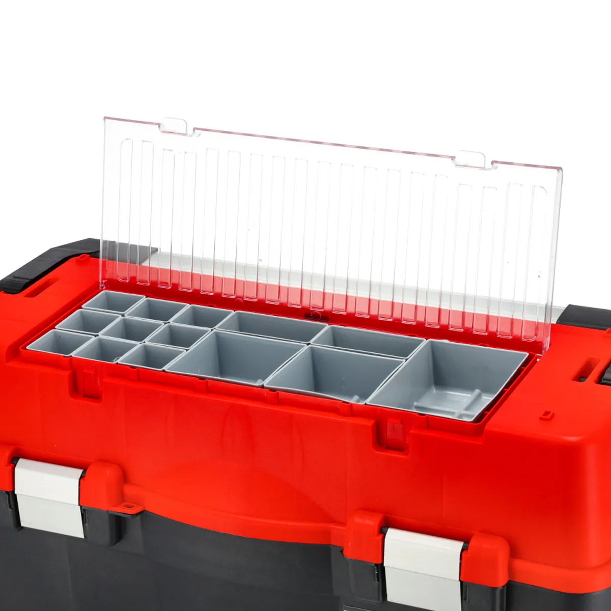 • Pokrywa wyposażona w organizery z przegródkami na np. gwoździe, śrubki