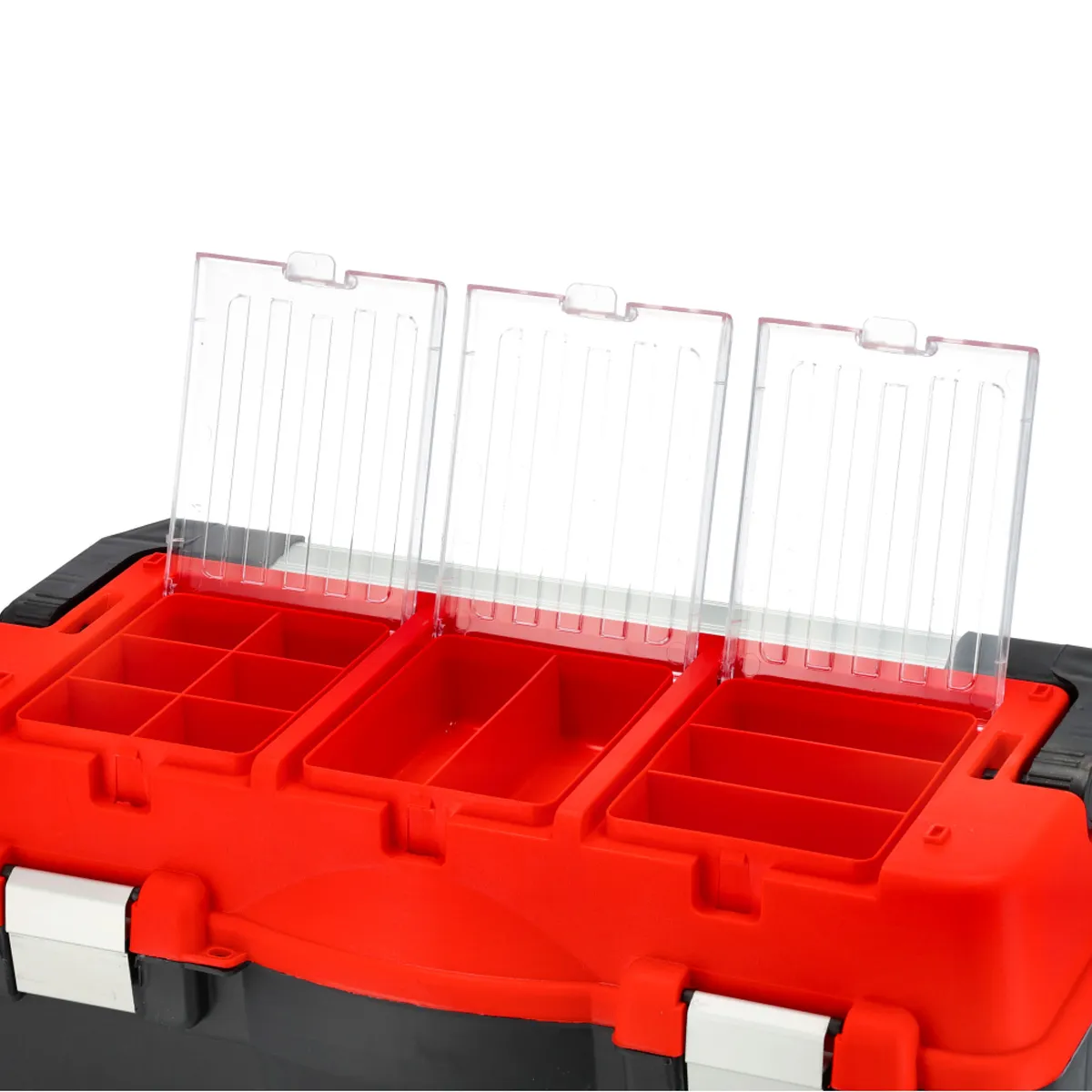 - Pokrywa wyposażona w organizery z przegródkami na np. gwoździe, śrubki