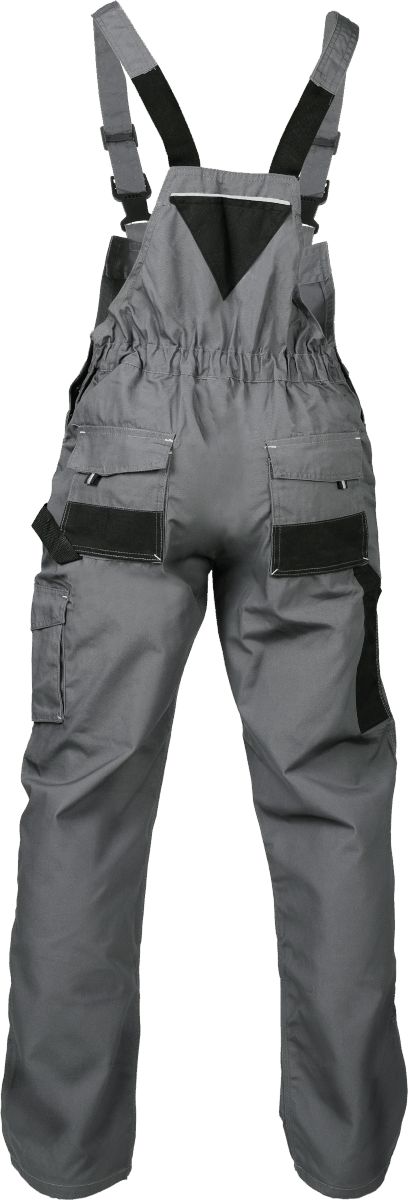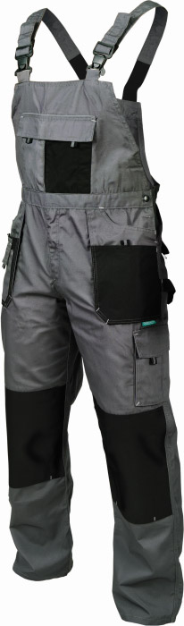 Dla zwiększenia trwałości w newralgicznych miejscach – przy kieszeniach, na kolanach i klatce piersiowej – zastosowano tkaninę OXFORD 600D, odporną na przetarcia i łatwą w czyszczeniu. Ogrodniczki wyposażono w funkcjonalne kieszenie: miechowe, na narzędzia, telefon, długopis, klucze oraz na wkładki ochronne na kolana.