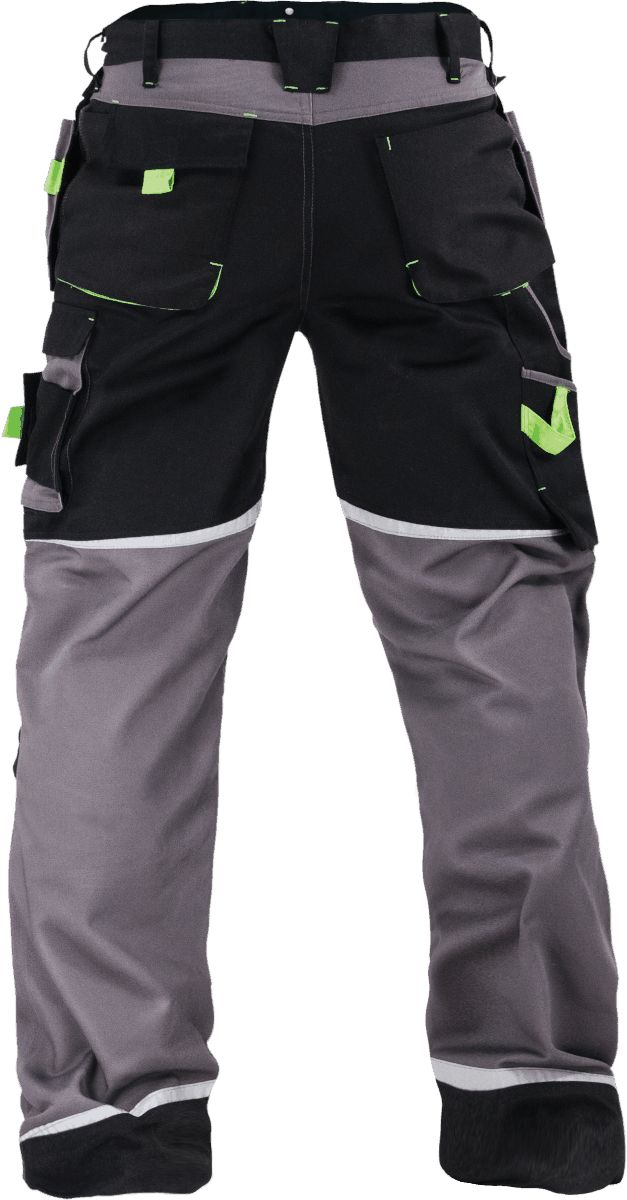 Dodatkowe wzmocnienia z tkaniny CORDURA w newralgicznych miejscach (kolana, kieszenie, dół nogawek) zwiększają odporność na przetarcia i wilgoć. Spodnie mają liczne, praktyczne kieszenie – w tym odpinane monterskie – przeznaczone na narzędzia, telefon czy identyfikator.