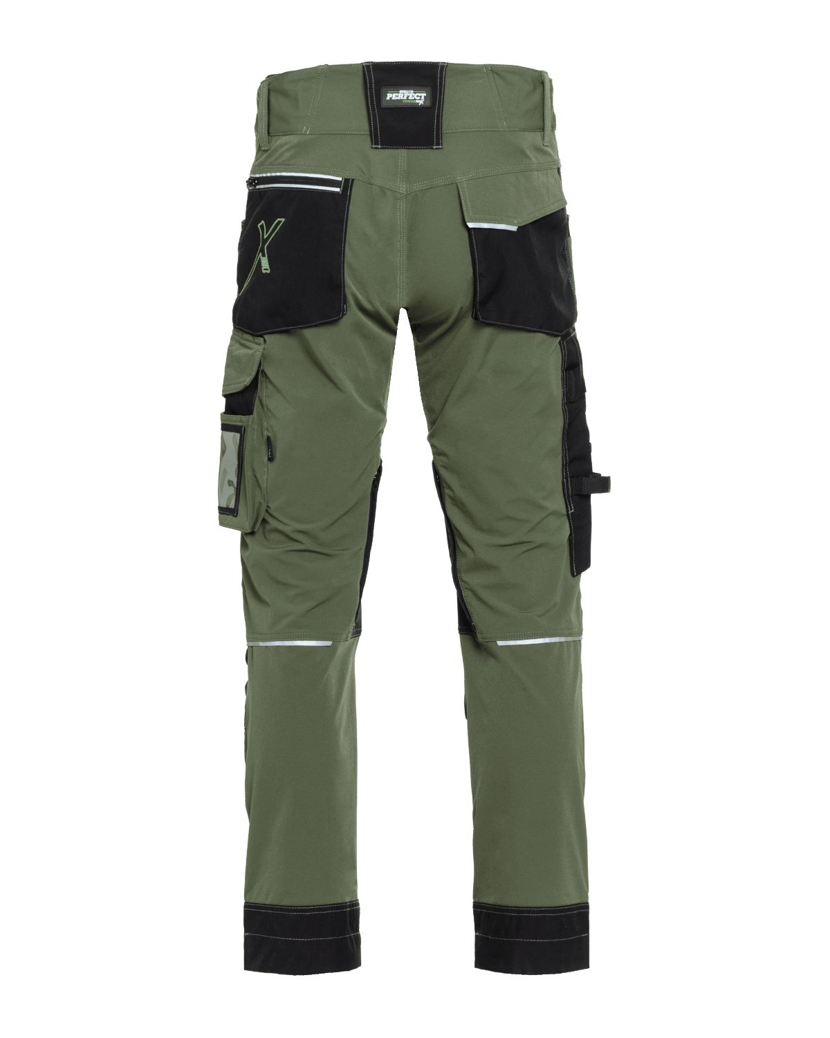 Wykonane są z elastycznego materiału typu softshell, który zapewnia wygodę i swobodę ruchów. Podwyższony tył pasa zwiększa komfort pracy w trudnych pozycjach, a zamki wentylacyjne pomagają odprowadzać nadmiar ciepła i wilgoci.