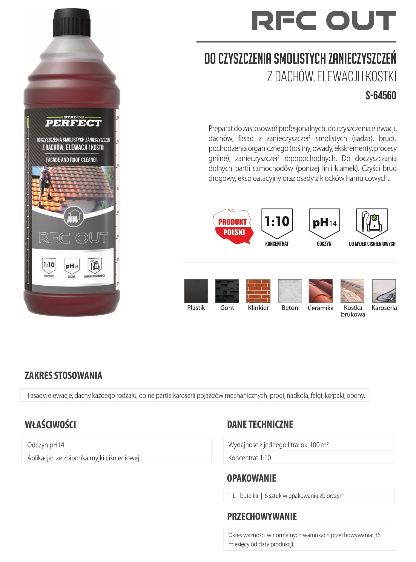 Jest to preparat do czyszczenia elewacji, dachów, fasad z zanieczyszczeń smolistych, brudu z roślin oraz zanieczyszczeń ropopochodnych.