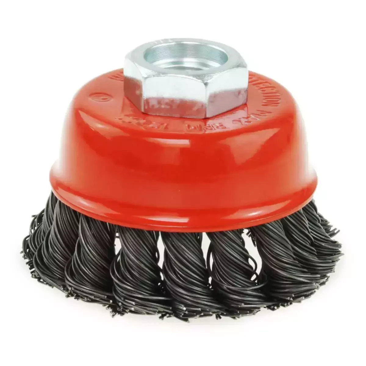 Szczotka druciana czołowa z gwintem M14 jest przystosowana do współpracy ze szlifierkami kątowymi.