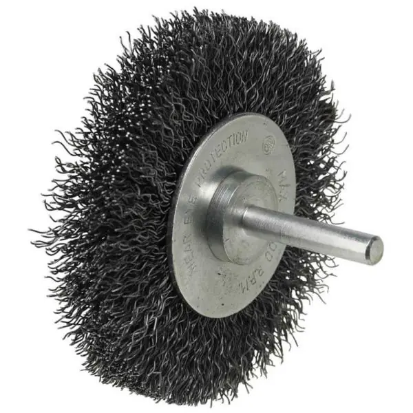 To metalowa szczotka obrotowa o średnicy 50 mm, przeznaczona do lżejszych prac czyszczących i obróbkowych na różnych powierzchniach.