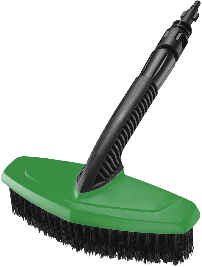 Podczas mycia dużych powierzchni na mokro przydatna może okazać się szeroka szczotka. Dzięki szybkozłączu można ją łatwo zamontować na pistolecie lub przedłużce lancy. Jest to akcesorium o konkretnym zastosowaniu, dlatego używa się jej jedynie w określonych przypadkach, a nie jako elementu stałego wyposażenia.