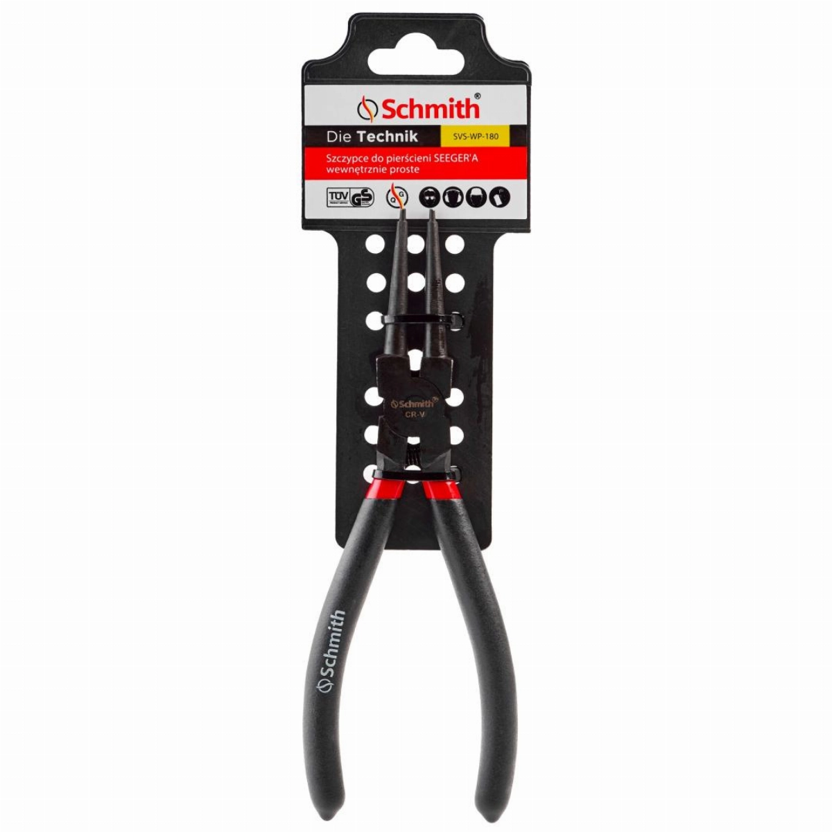 Szczypce proste do pierścieni SEGERA wewnętrzne 160 mm Schmith SVS‑WP‑160 — lekkie, stalowe szczypce do montażu i demontażu pierścieni osadczych typu Segera w otworach.
