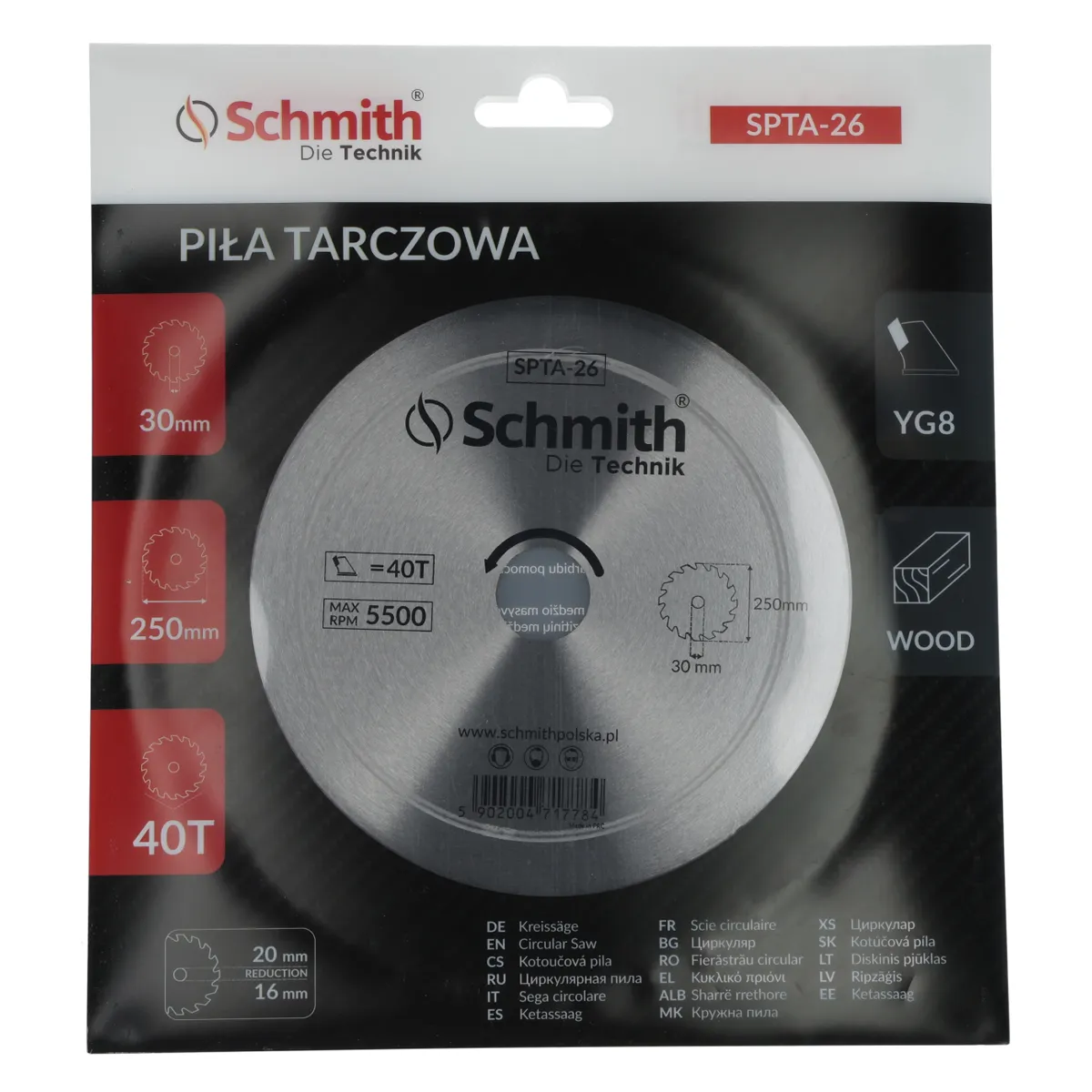 Bądź pierwszy który oceni "Tarcza pilarska widiowa 250mm 40T Schmith SPTA-26"