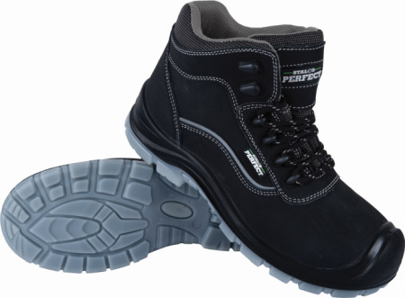 HELIOS HIGH STALCO PERFECT S-78012 to buty wykonane z naturalnej skóry nubukowej, charakteryzującej się delikatnym, krótkim meszkiem, są wytrzymałe i eleganckie. Wyposażone w kompozytowy podnosek, który chroni palce przed uderzeniem o energii do 200 J, buty są lżejsze niż modele z metalowym noskiem i nie przewodzą zimna. Kevlarowa wkładka chroni przed przekłuciem, zapewniając jednocześnie elastyczność i wygodę.