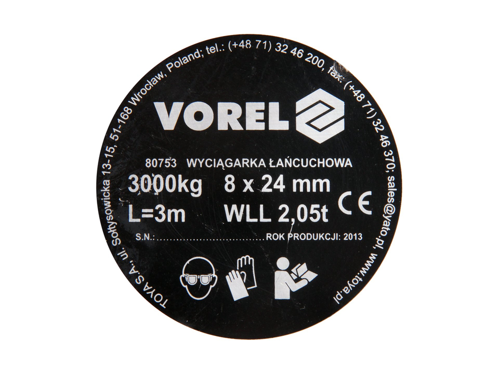 Bądź pierwszy który oceni "Wciągarka łańcuchowa 3000Kg Vorel 80753"