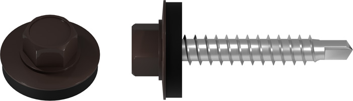 Wkręt wykonany został z stali, a podkładka z blachy stalowej i dodatkowo wzmocniona gumą EPDM. Trzpień wkręta zakończony został sześciokątnym łbem oraz końcówką samowiercącą.