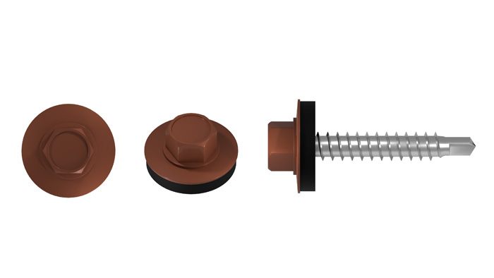 Wkręt wykonany został z stali, a podkładka z blachy stalowej i dodatkowo wzmocniona gumą EPDM. Trzpień wkręta zakończony został sześciokątnym łbem oraz końcówką samowiercącą.