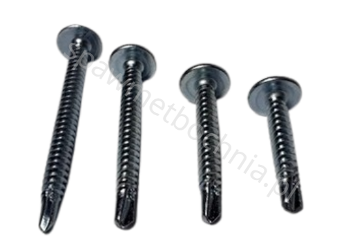 Wkręt samowiercący o wymiarach 4,2×13 mm z łbem podkładkowym to element złączny przeznaczony głównie do szybkiego i wygodnego łączenia cienkich blach oraz elementów metalowych bez konieczności wcześniejszego nawiercania.