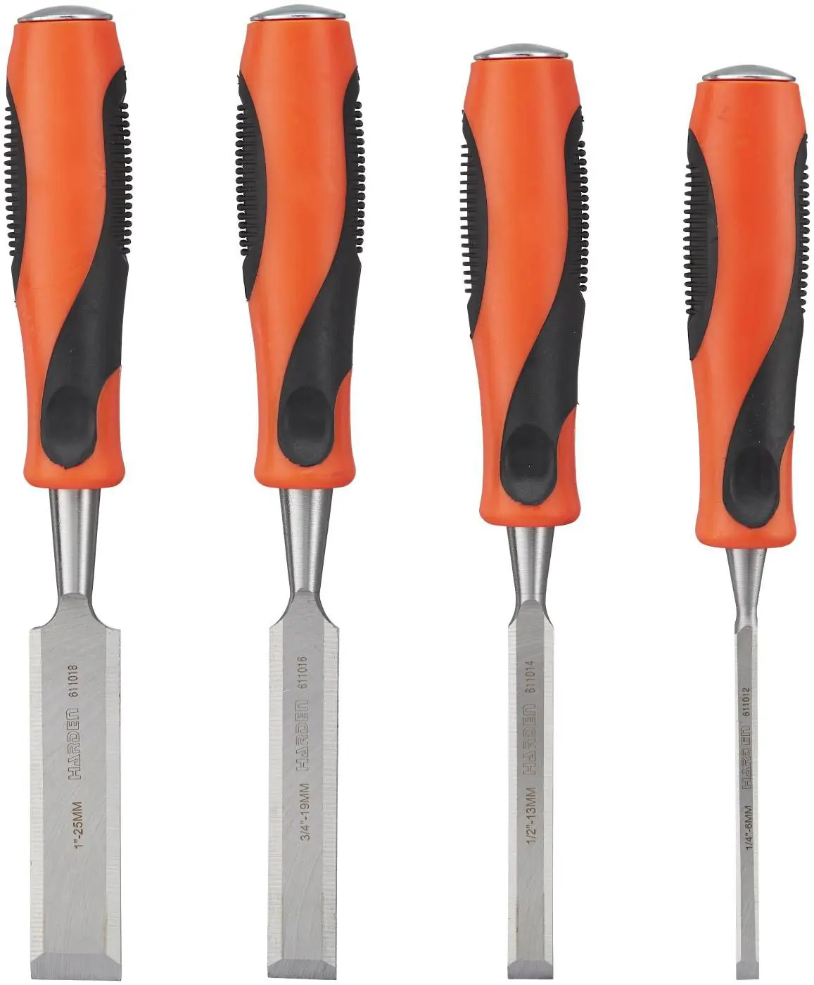Zawiera cztery dłuta o szerokościach 6, 13, 19 i 25 mm, wykonane ze stali hartowanej, zapewniającej trwałość i odporność na zużycie.