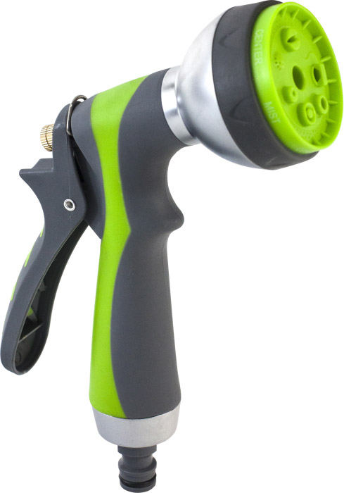 Zraszacz pistoletowy – wytworzony został z tworzywa ABS pokrytego gumą termoplastyczną. Wyposażony jest również w regulację siły stumienia, blokadę pracy ciągłej oraz posiada 7 różnych rodzajów strumiena wody.